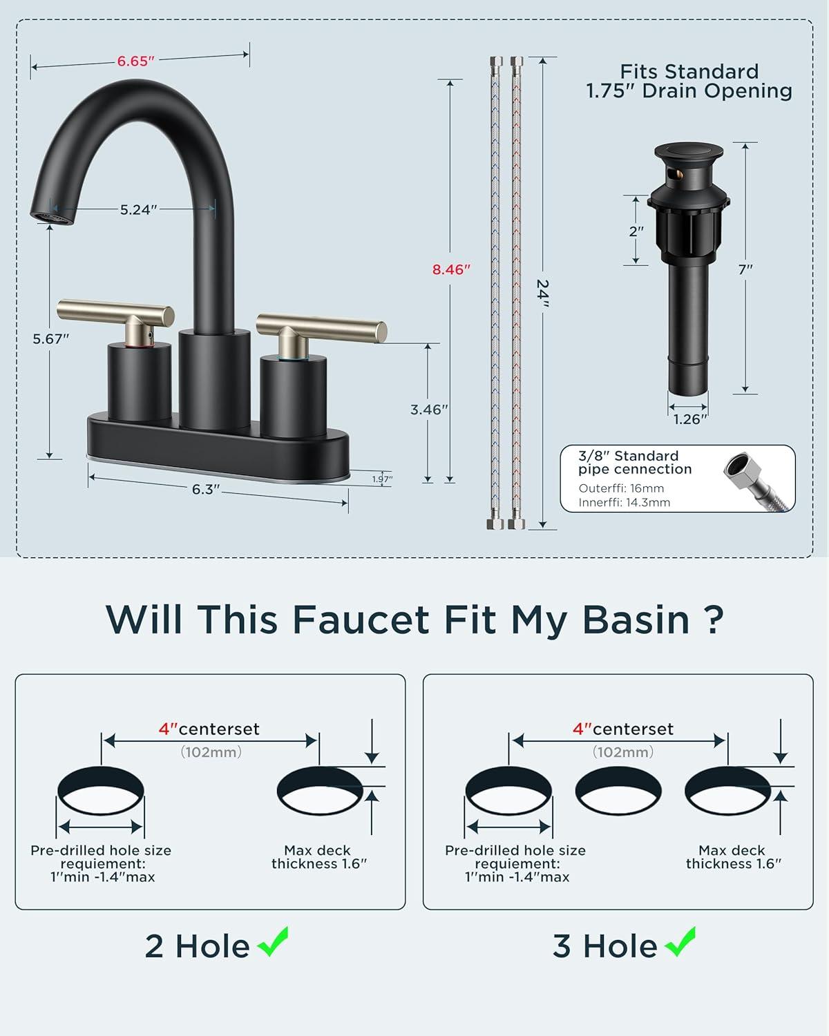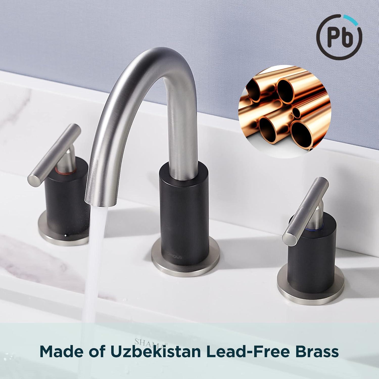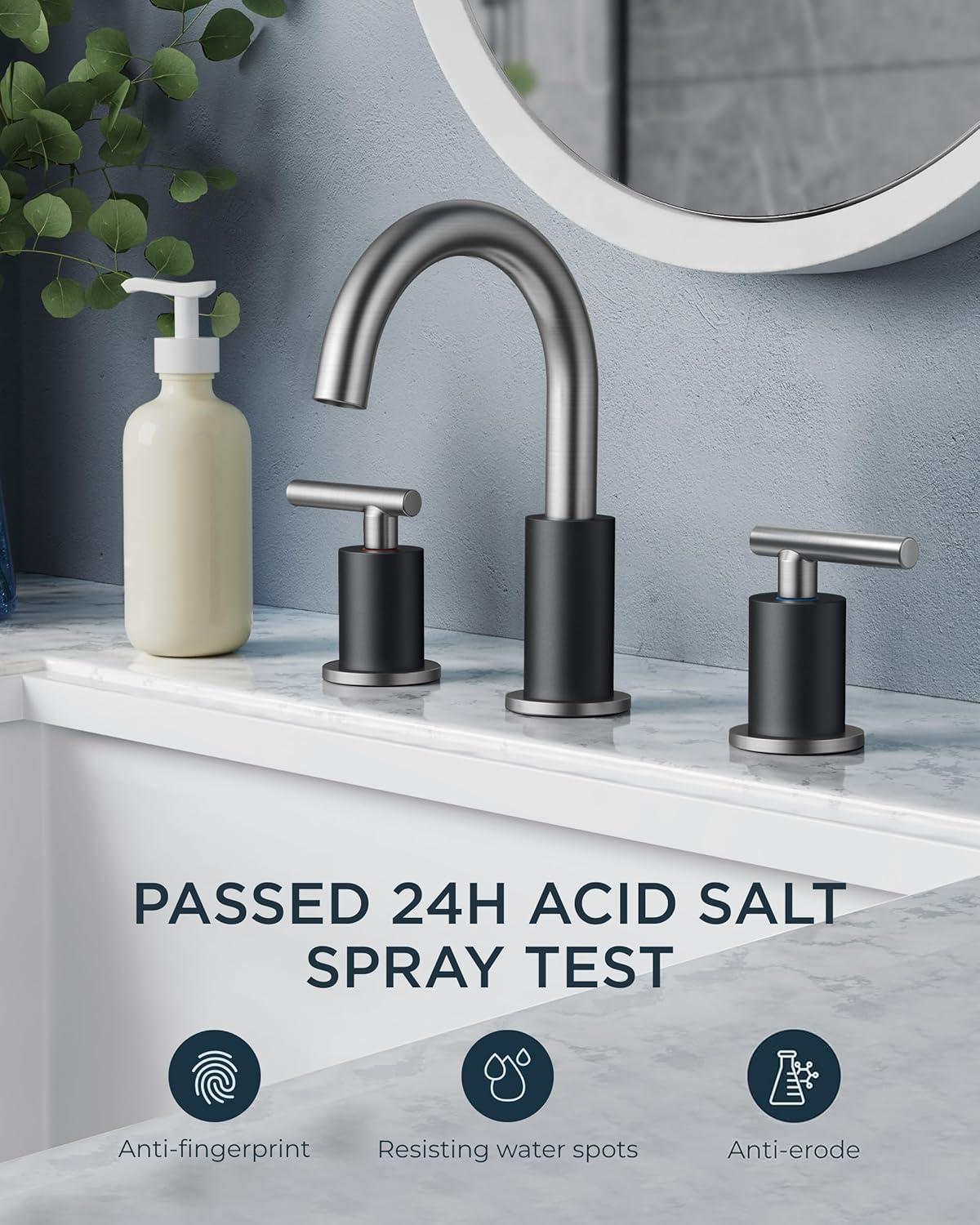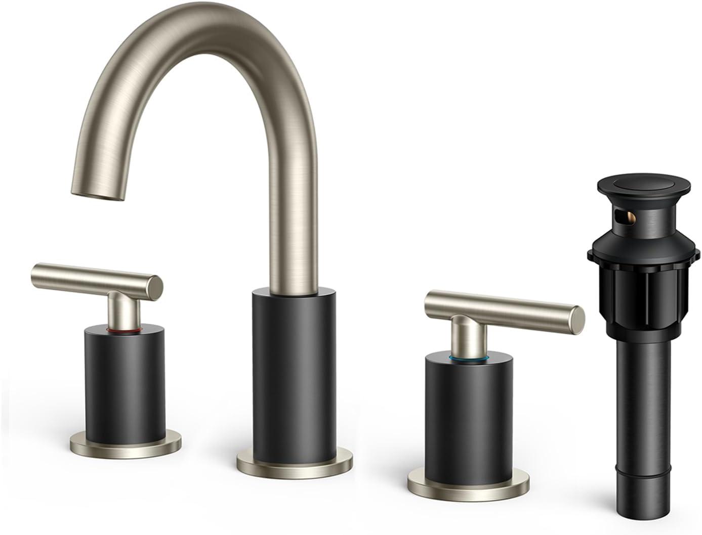 FORIOUS 2 Pack Black Bathroom Faucet 3 Hole, 8″ Widespread Matte Black Bathroom Sink Faucet with 360°Swivel Spout, Suitable for 6-12 Inch Vanity Sink, with Metal Pop-up Drain and Supply Line(Stainless Steel&Black)
