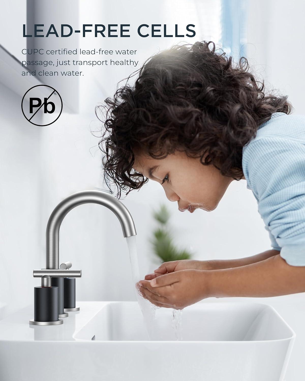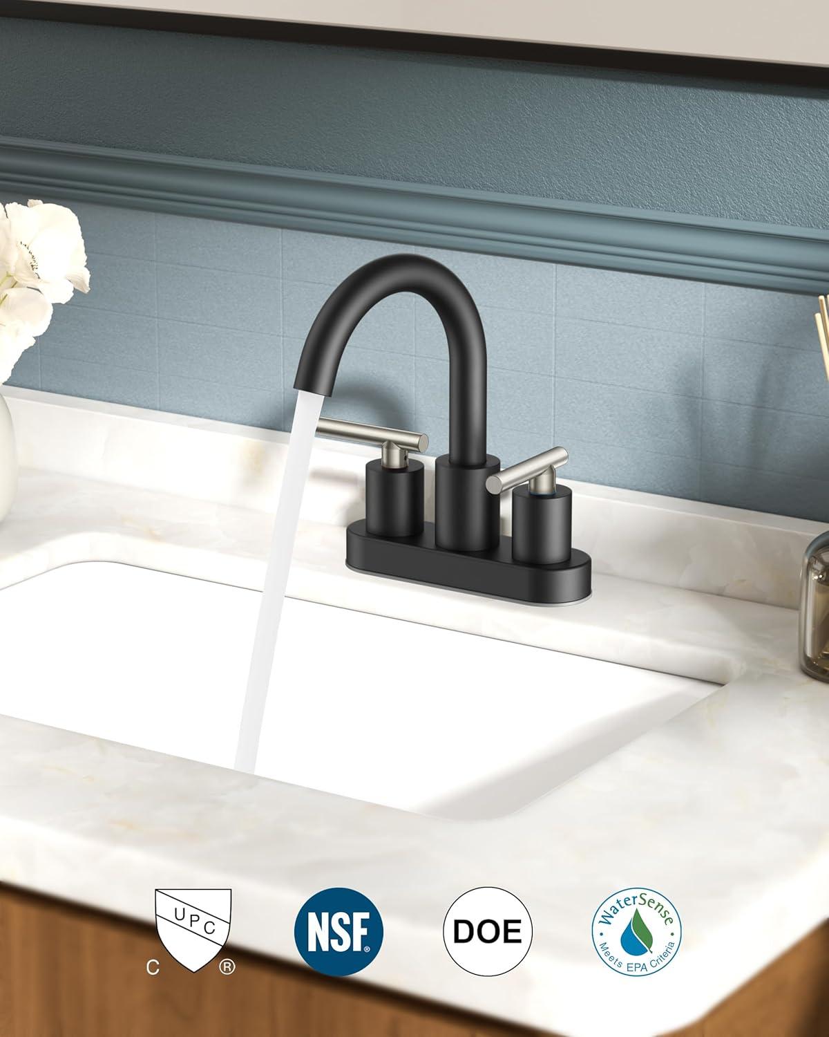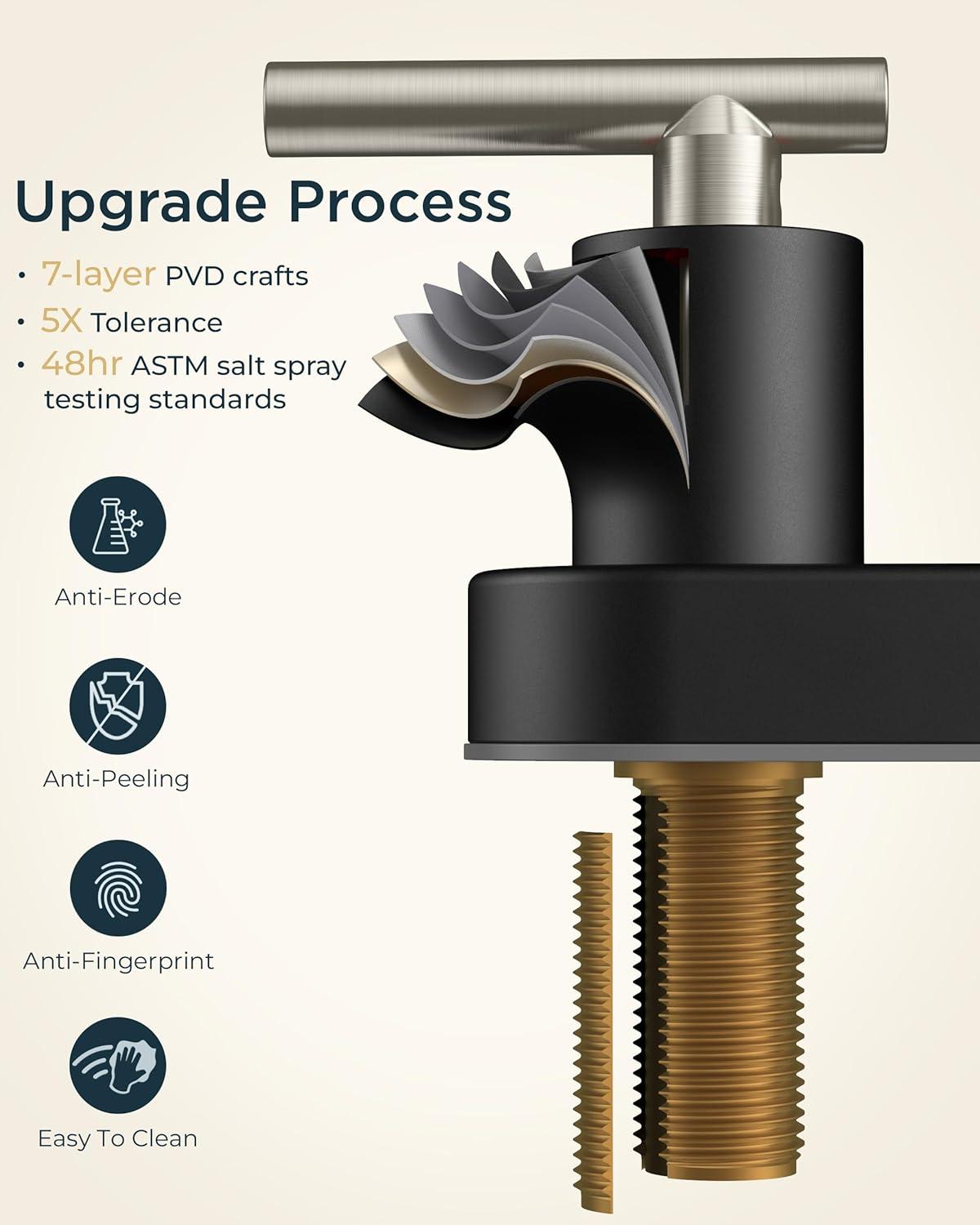 FLEXIBLE&DURABLE: 360° gooseneck bathroom sink faucet greatly boosts spatial flexibility and ease of use. 7-layer PVD crafts passes 24hr ASTM salt spray testing (5x tolerance). Resists peeling, rust, and fingerprints—perfect for any bathroom upgrade. Flow rate: 1.2gpm/4.5L/min at Max 60psi
