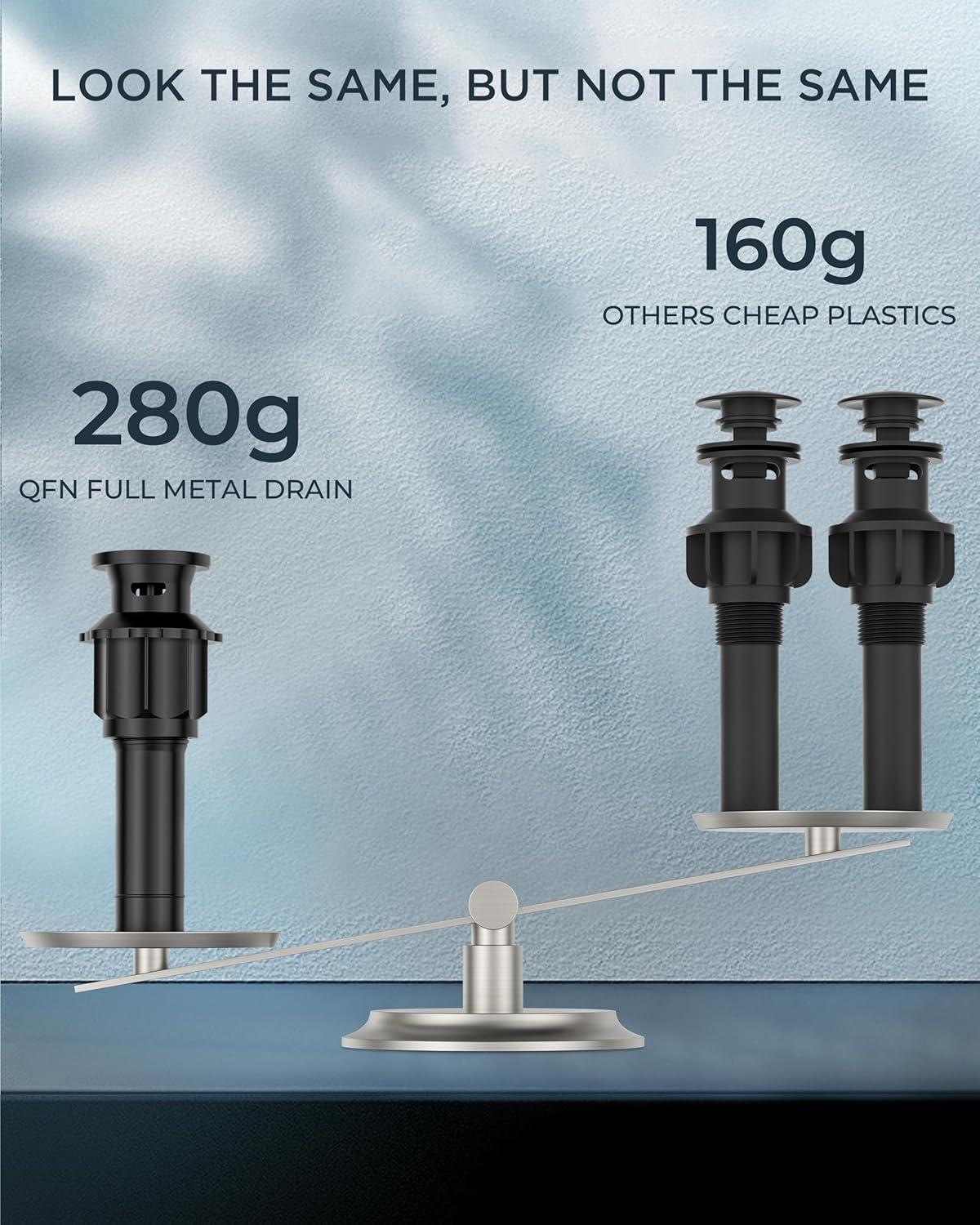 DRAINER: Gold sink faucet bathroom overflow drain matched to tap finish and achieves 35% faster flow while 22dB noise reduction. Removable filter basket captures 75% hair clogs—pull up and clean in 10 sec. Non-overflow sinks require >0.76″ thickness