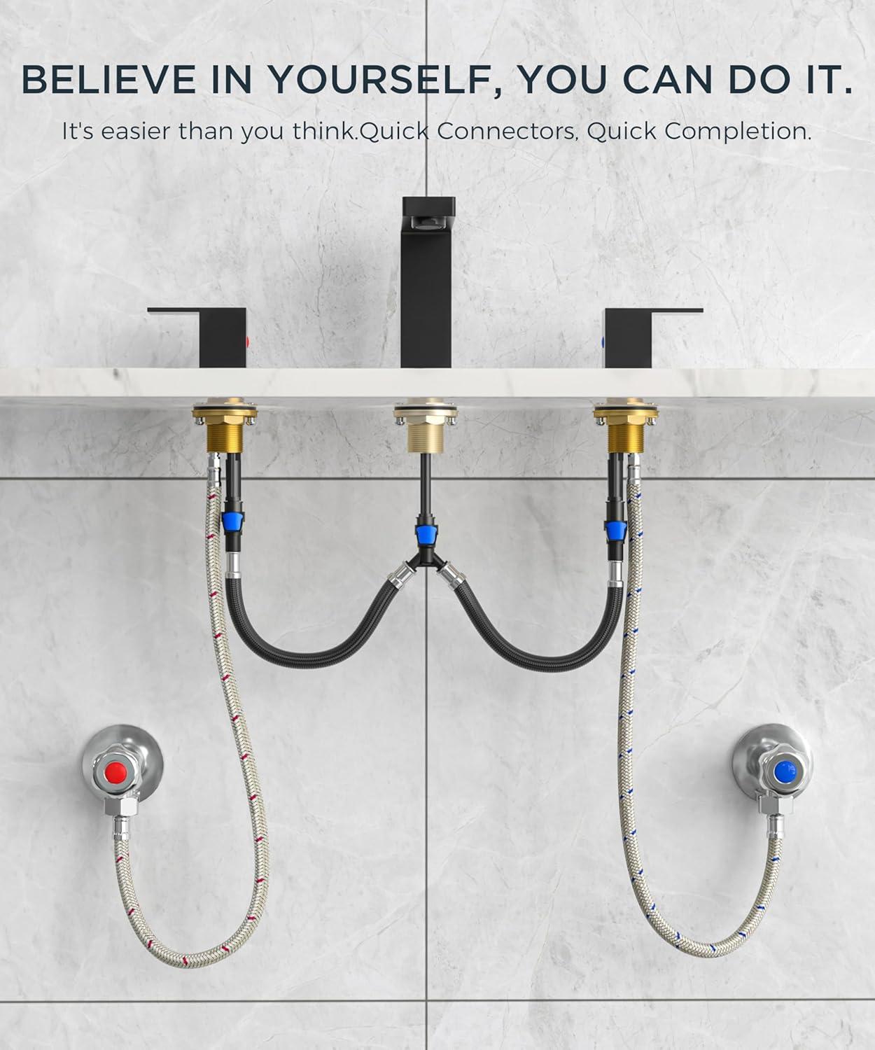 HIGH-PERFORMANCE HOSE: 3x burst pressure-tested&cUPC certified InnoFlex PEX hoses, explosion-proof and high-temperature resistant, safe for drinking water. Forious bathroom faucet with 3/8 US-standard pipe threads&leak-proof built-in ring prevents leaks