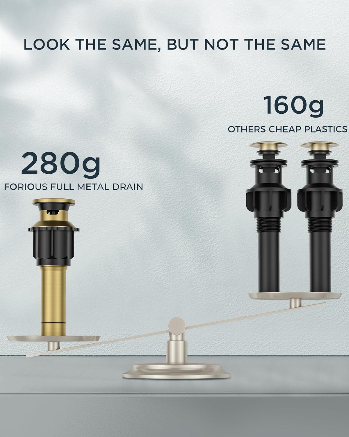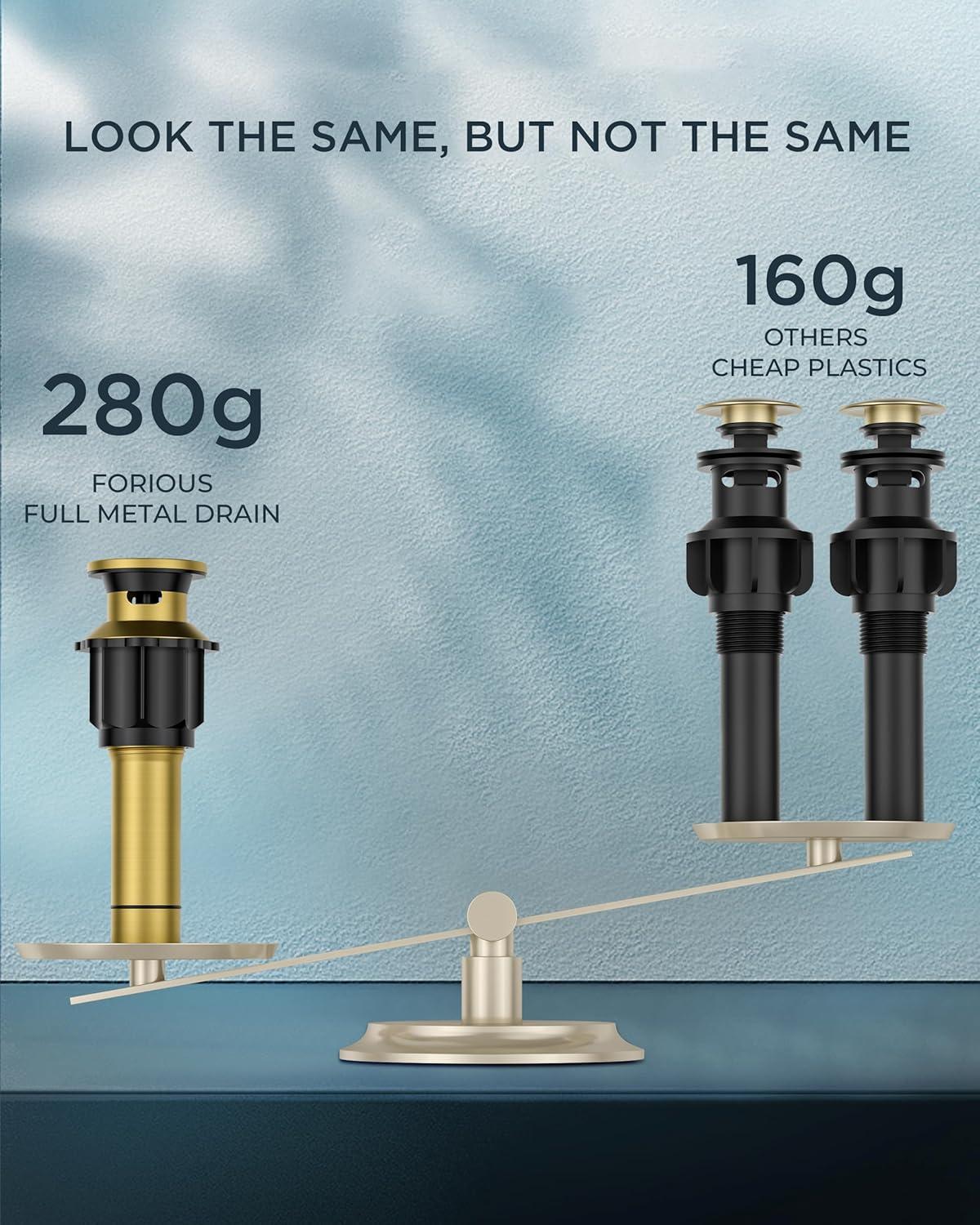 Be the first to review “FORIOUS 2 Pack Gold Bathroom Faucet 3 Hole, Square 2 Handle 8 in Widespread Brushed Gold Bathroom Sink Faucet 3 Hole with Metal Drain, 24″ CUPC Supply Lines and Spare Aerator(Brushed Gold)”