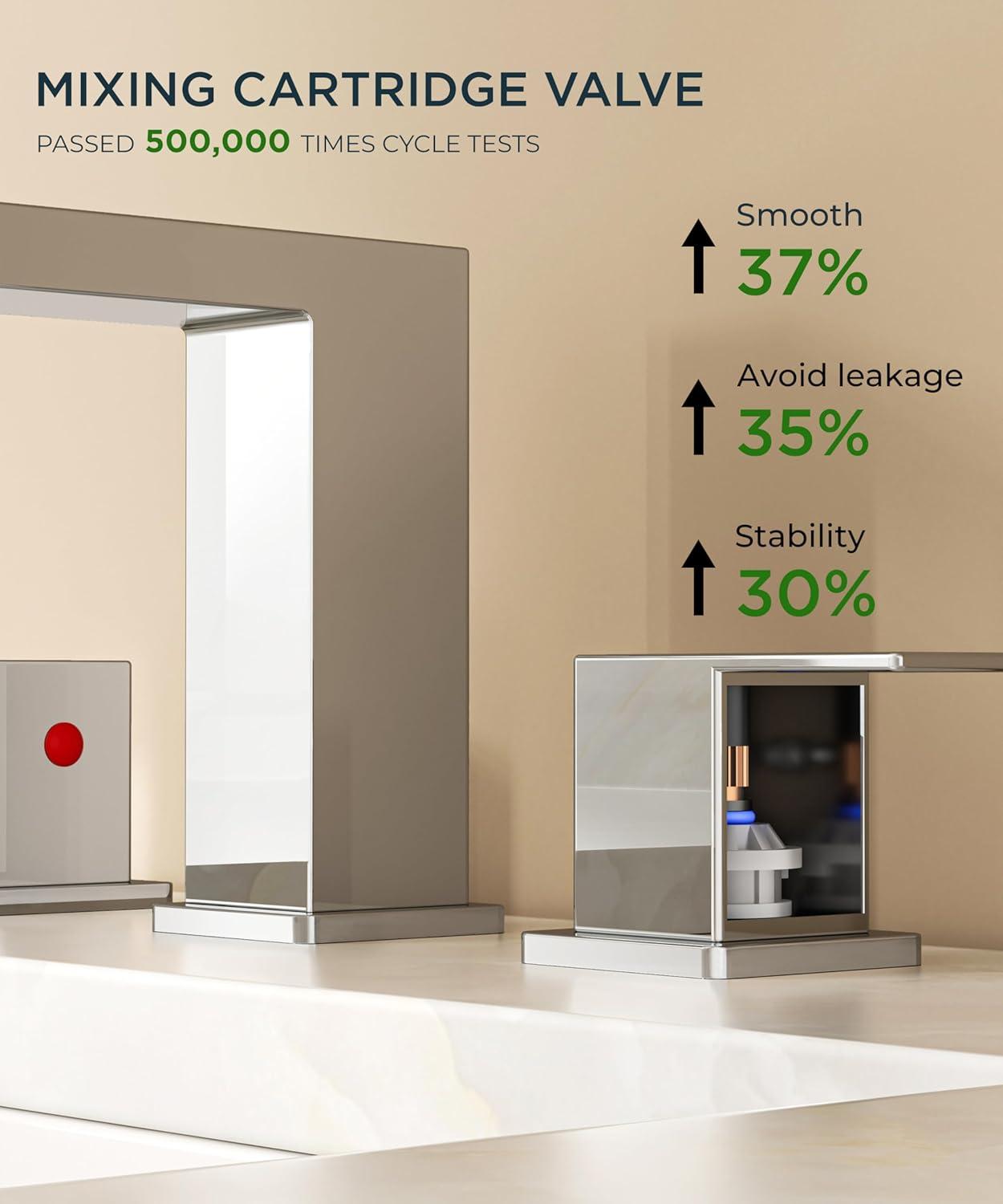 DURABILITY: Mixing ceramic cartridges gold bathroom sink faucet survive 500K+ cycles (Double-enhanced abrasion resistance, 3x performance improvement) with NSF, ANSI 61, cUPC, CEC, WaterSense and DOE certification, for water safety & energy efficiency
