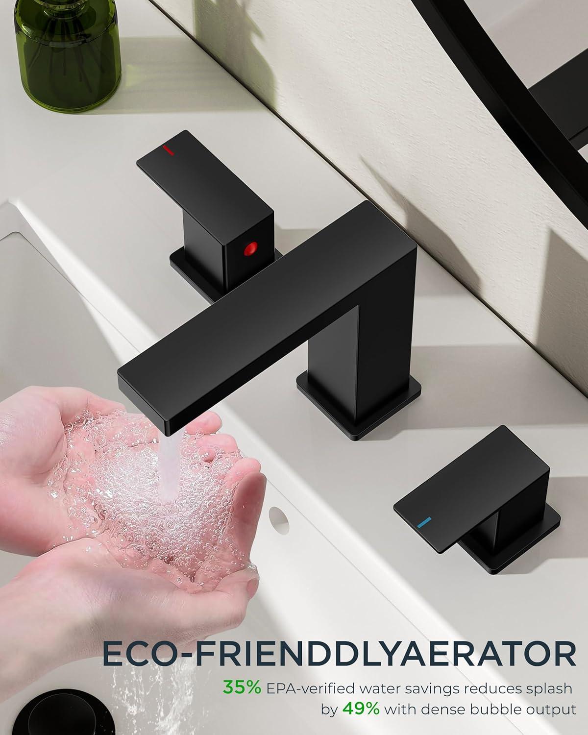 DIY INSTALLATION: 3-click connectors + video guide enable 15-min install. The sink faucet for bathroom with built-in leak-proof gaskets & 1.2GPM aerator save 30% water/38% splash(EPA-certified) — Survey shows 94% users install without plumbers. Flow rate: 1.2gpm/4.5L/min at Max 60psi