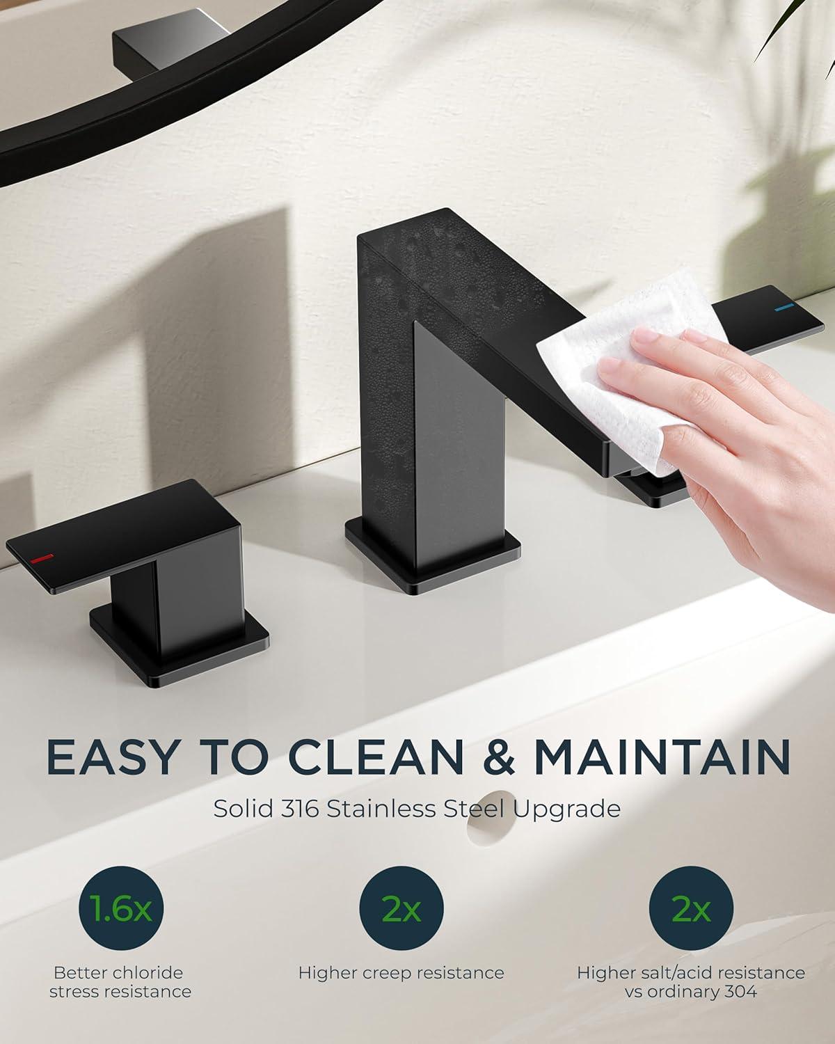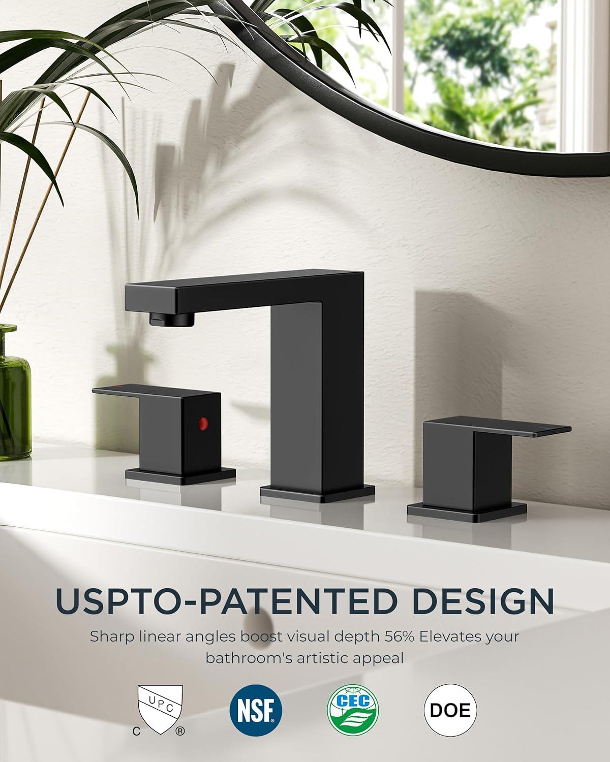 FORIOUS 2 Pack Gold Bathroom Faucet 3 Hole, Square 2 Handle 8 in Widespread Brushed Gold Bathroom Sink Faucet 3 Hole with Metal Drain, 24″ CUPC Supply Lines and Spare Aerator(Matte Black)