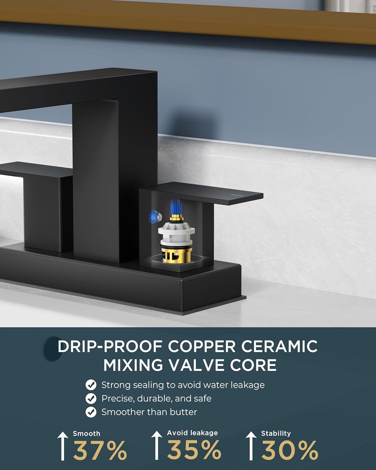 DURABILITY: Mixing ceramic cartridges gold bathroom sink faucet survive 500K+ cycles (Double-enhanced abrasion resistance, 3x performance improvement) with NSF, ANSI 61, cUPC, CEC, WaterSense and DOE certification, for water safety & energy efficiency