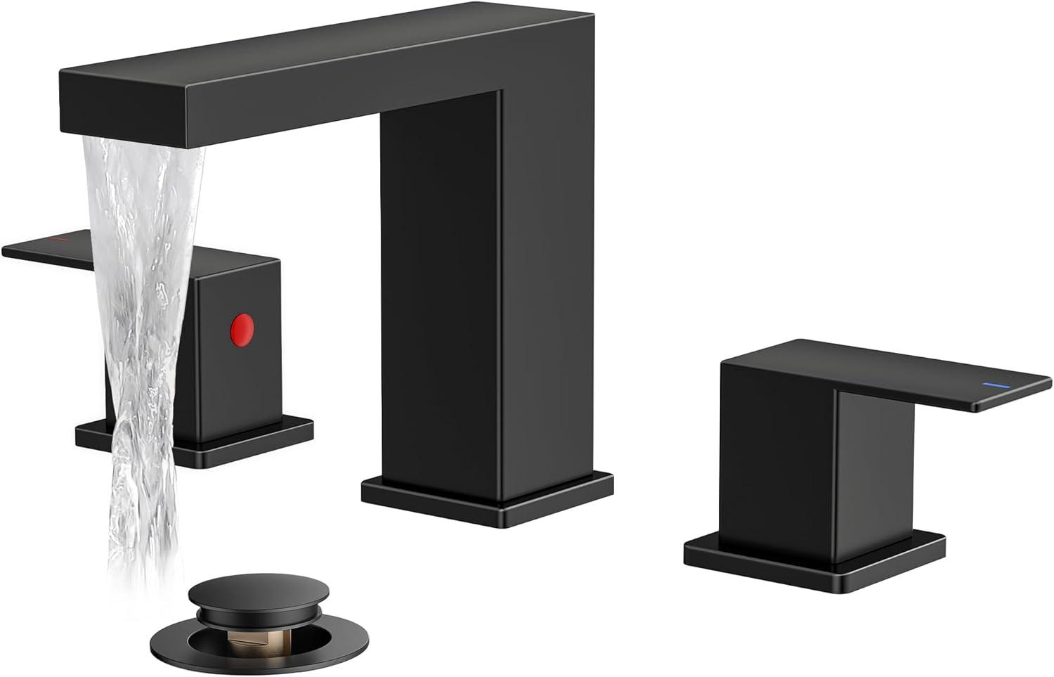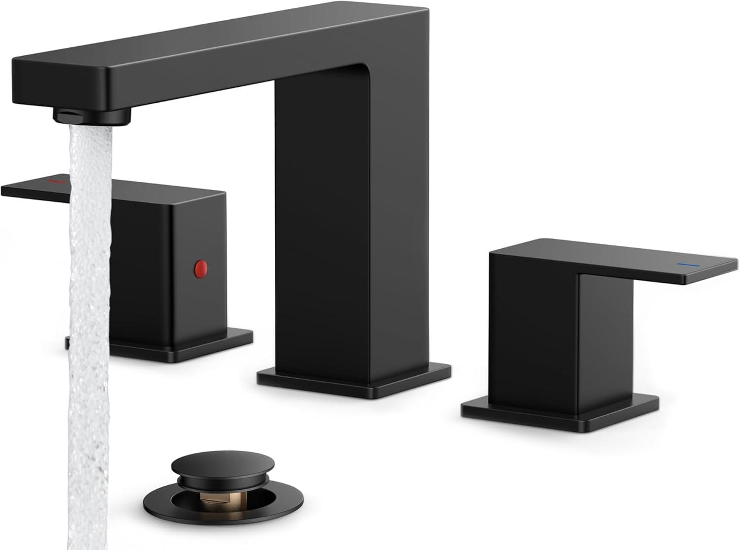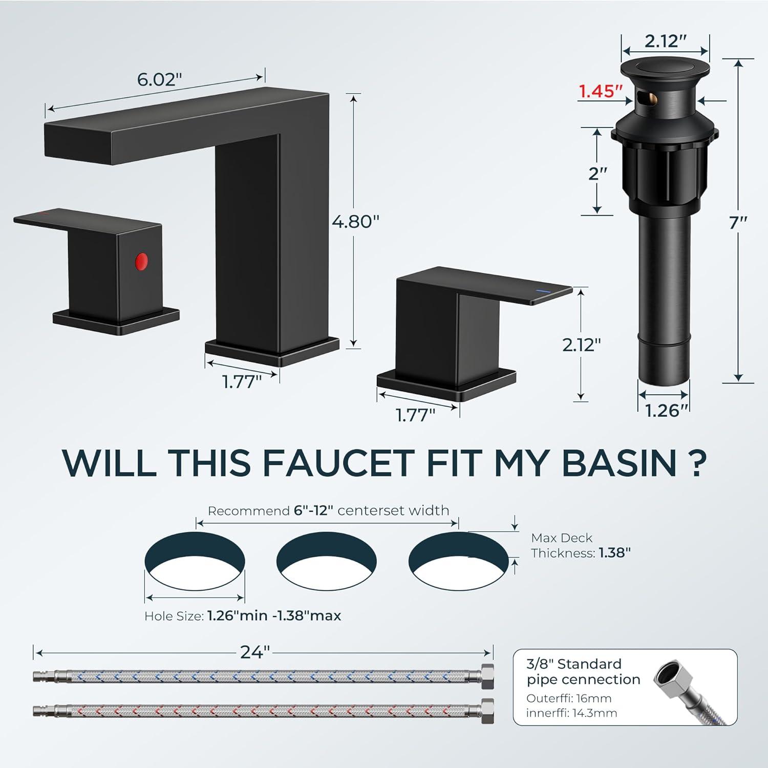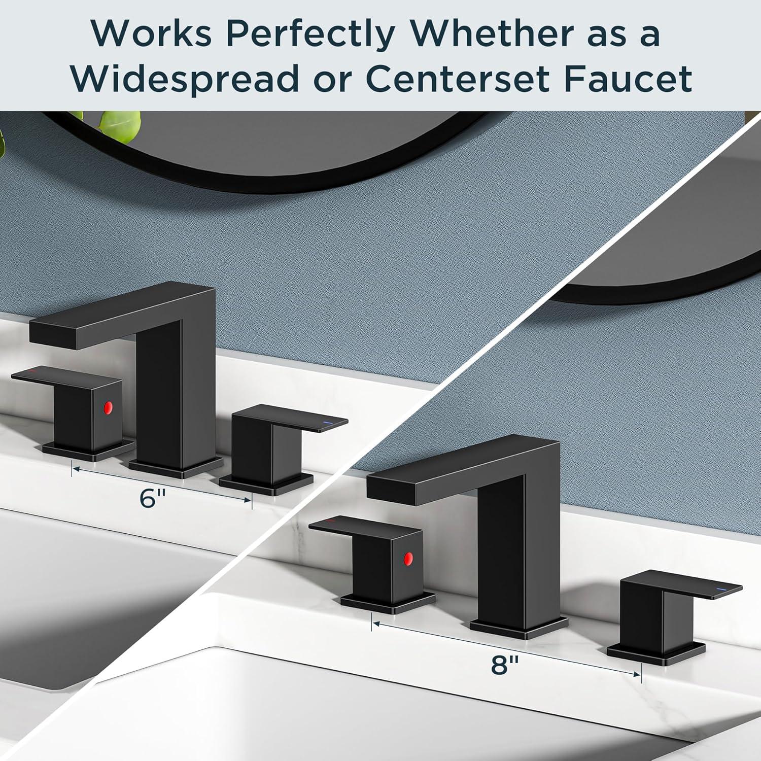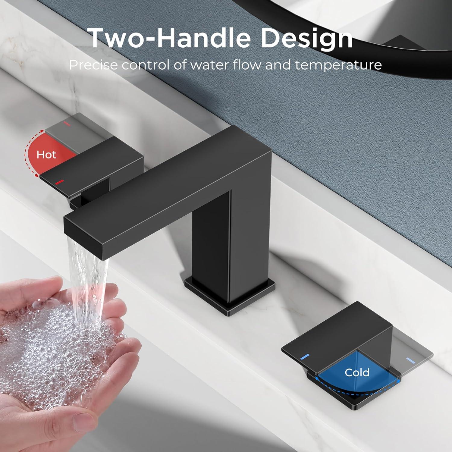 FORIOUS 2 Pack Gold Bathroom Faucet 3 Hole, Square 2 Handle 8 in Widespread Brushed Gold Bathroom Sink Faucet 3 Hole with Metal Drain, 24″ CUPC Supply Lines and Spare Aerator(Matte Black)