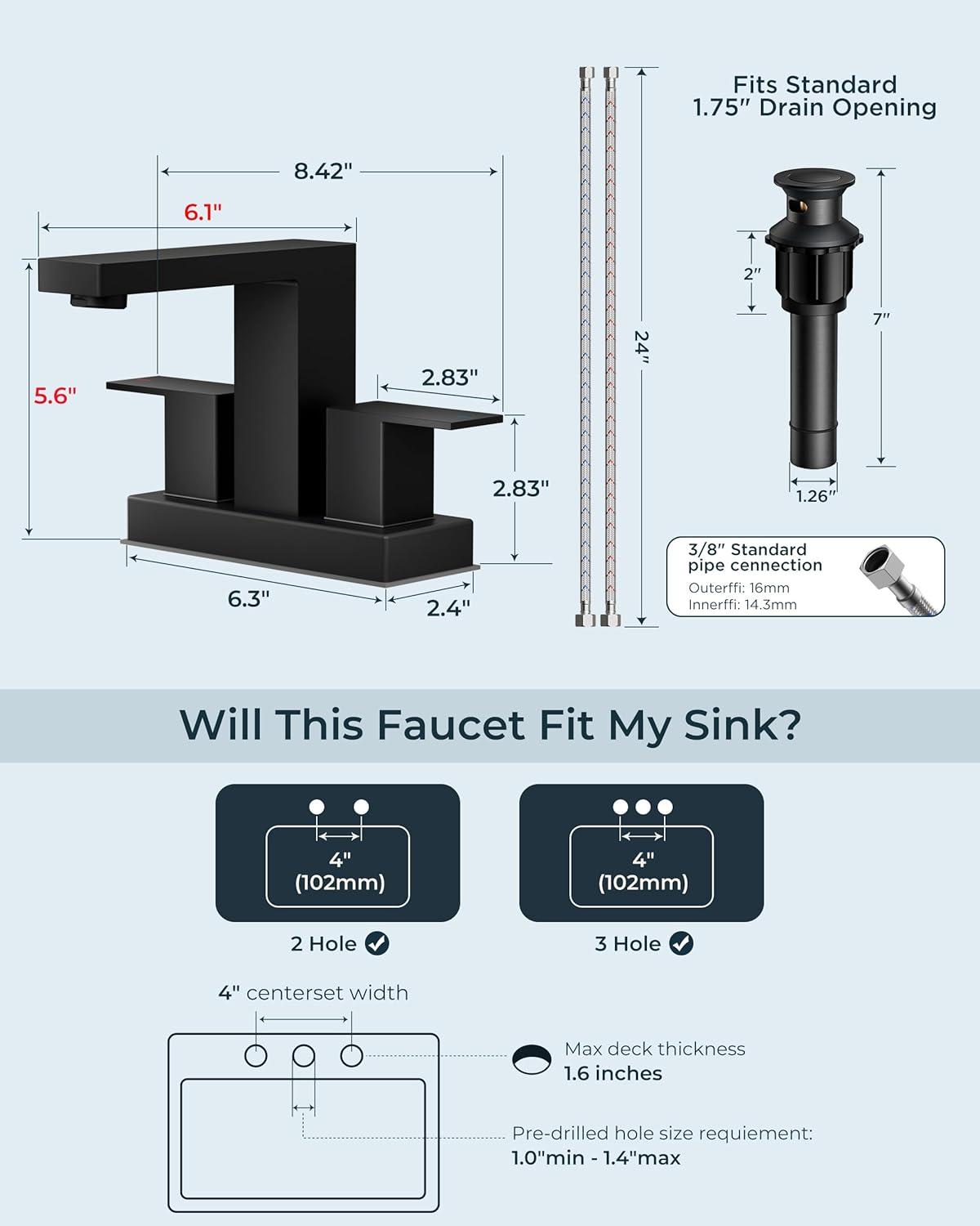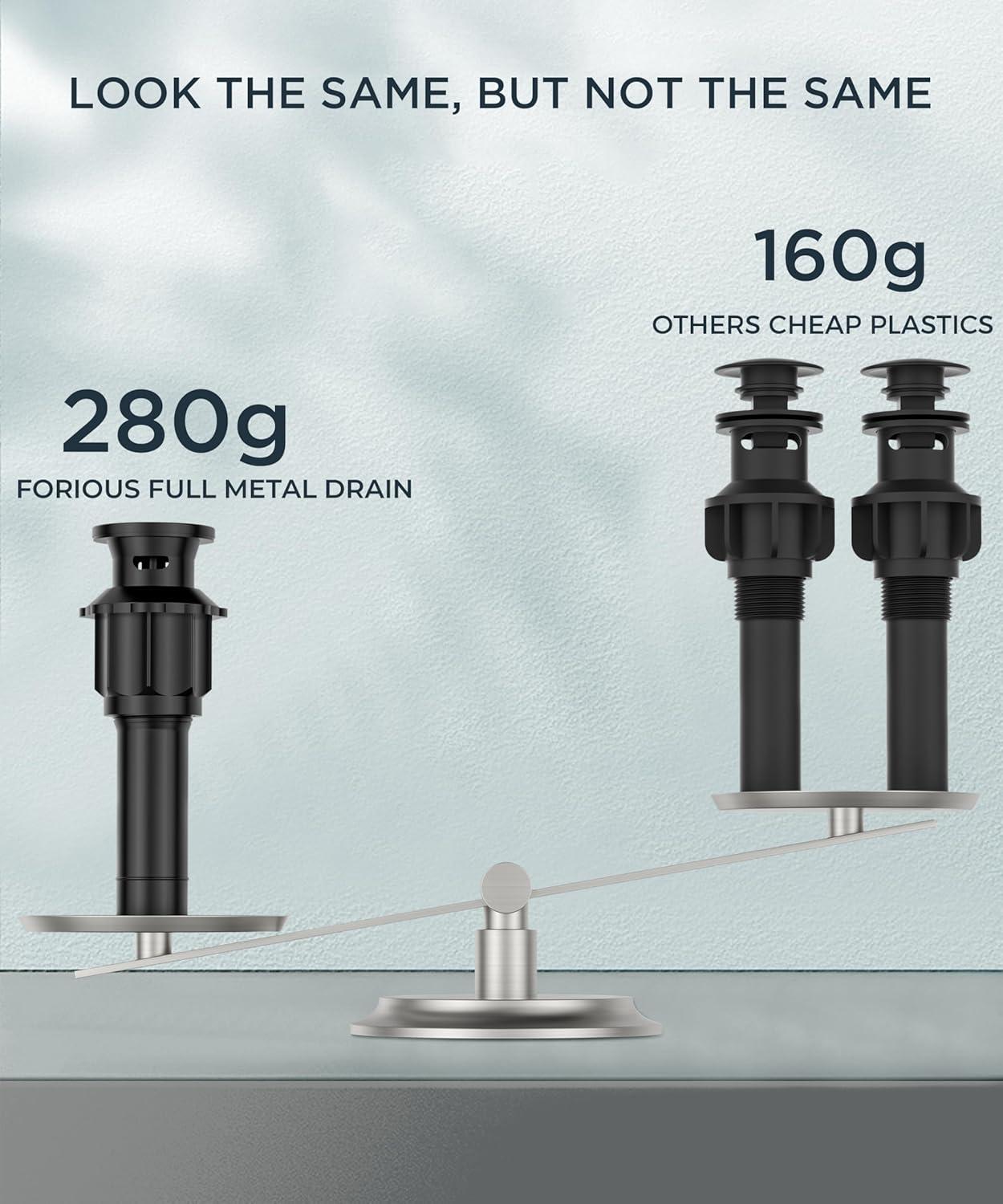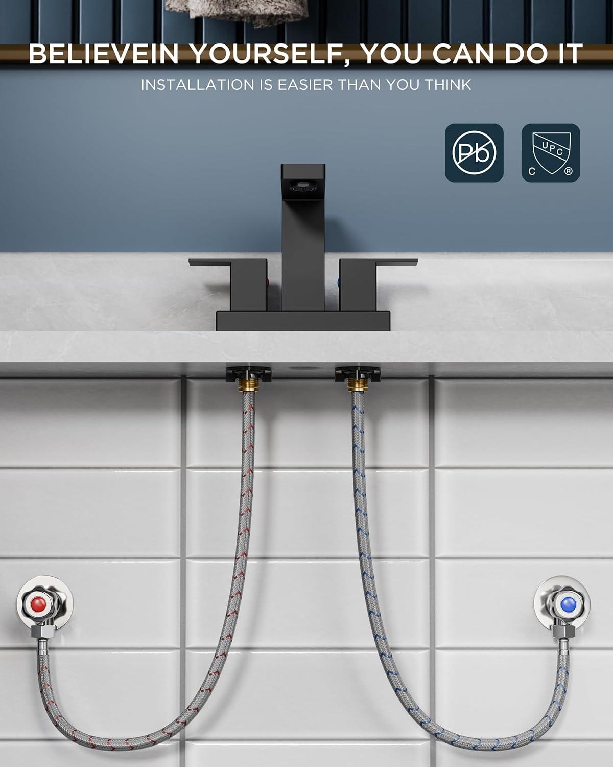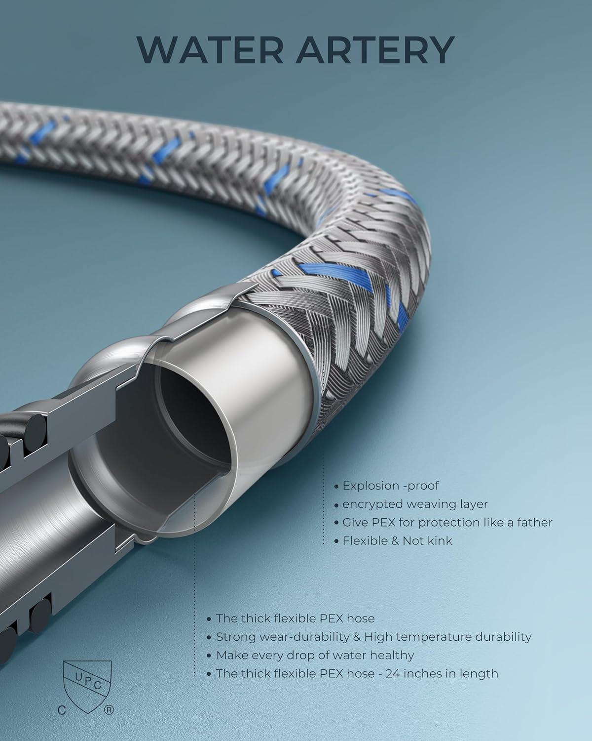HIGH-PERFORMANCE HOSE: 3x burst pressure-tested&cUPC certified InnoFlex PEX hoses, explosion-proof and high-temperature resistant, safe for drinking water. Forious bathroom faucet with 3/8 US-standard pipe threads&leak-proof built-in ring prevents leaks