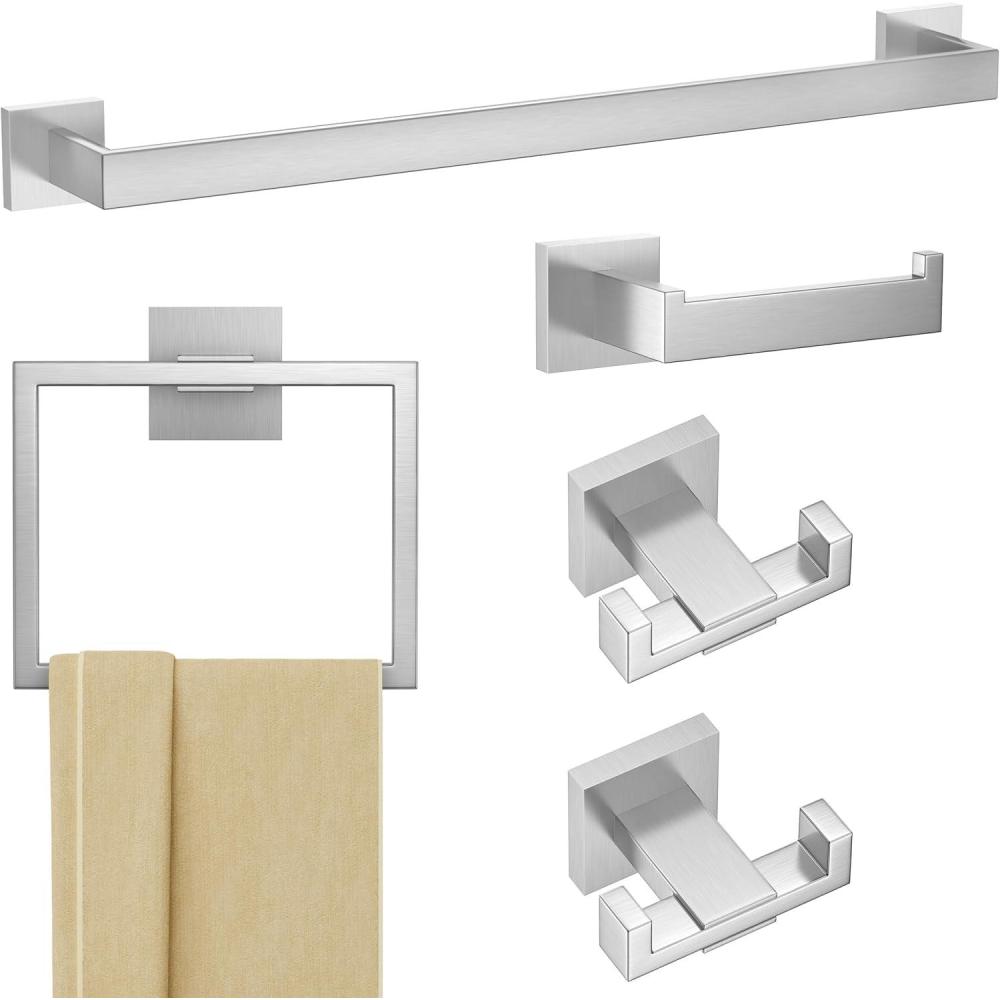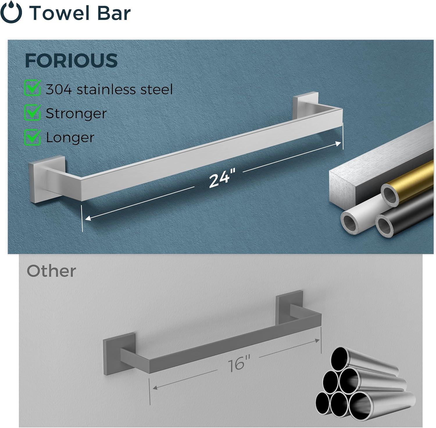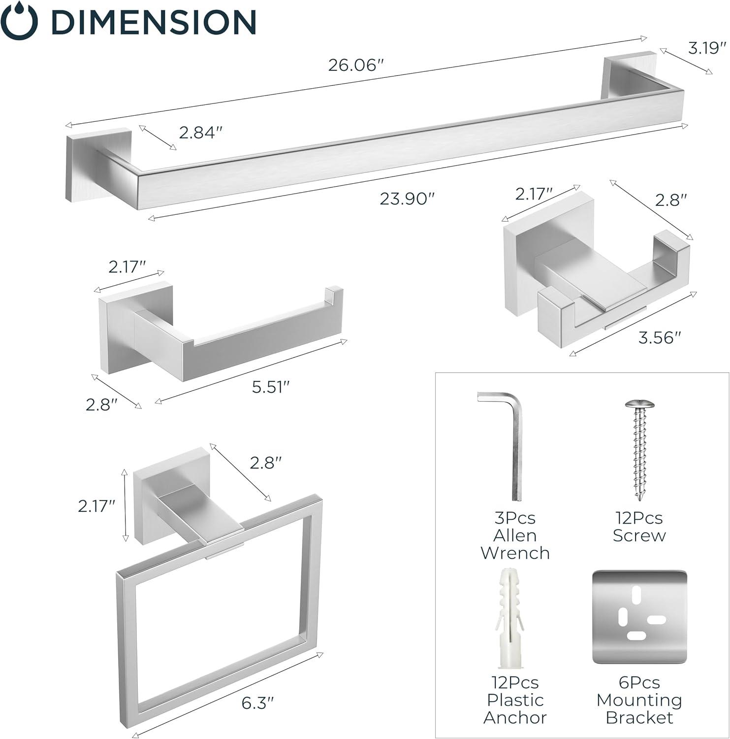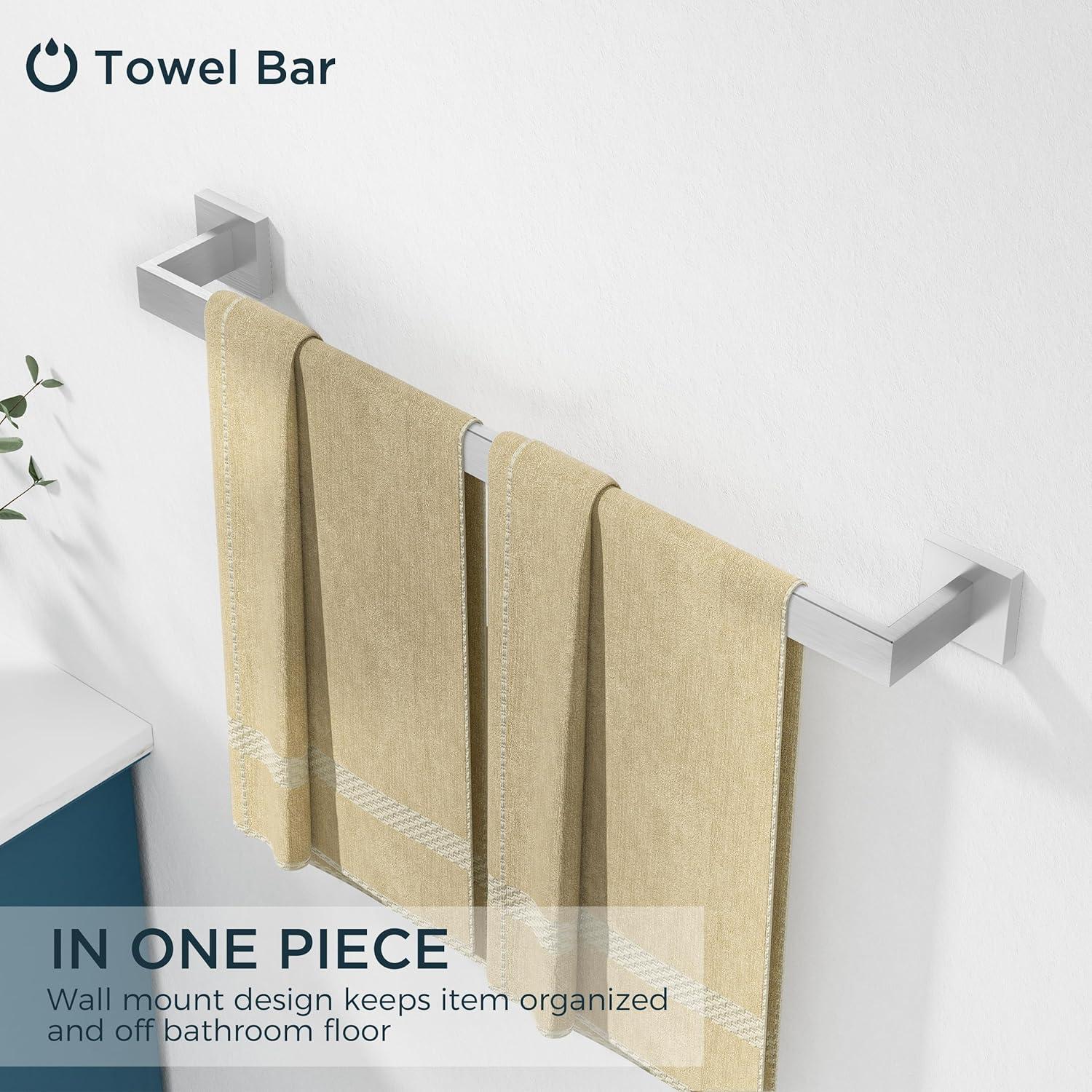 Complete Bathroom Upgrade: Enhance your bathroom with our durable Towel bar sets. This set includes a 24-inch towel bar, a towel ring, a toilet paper holder, and towel hooks, providing everything you need for a complete bathroom transformation