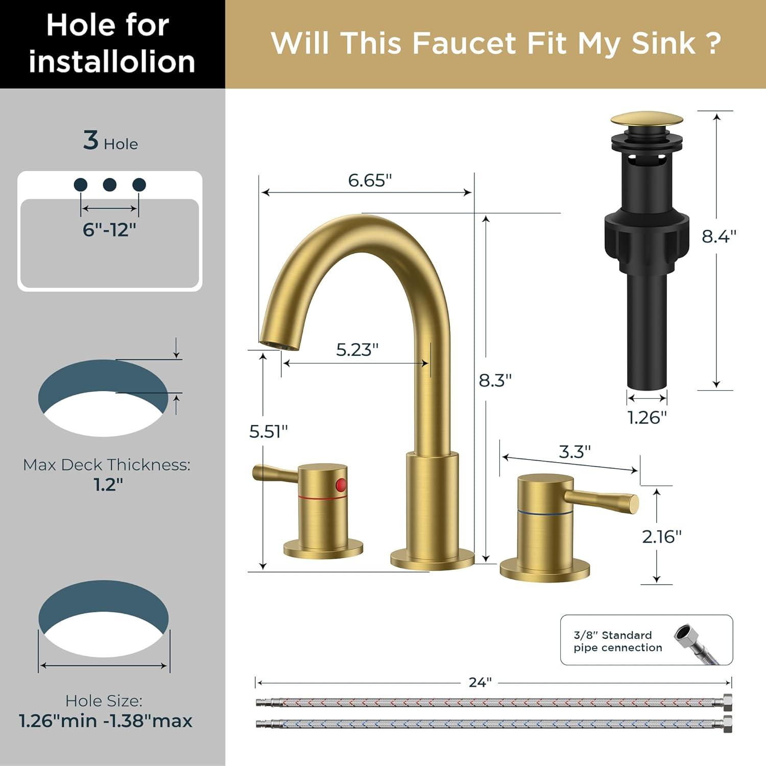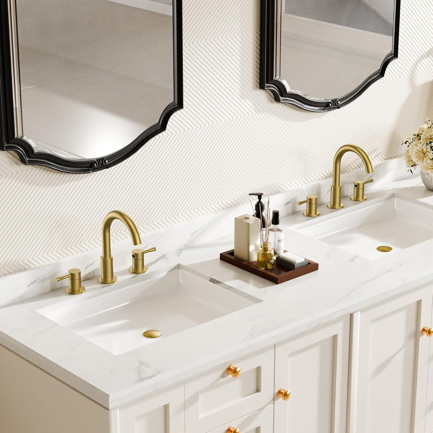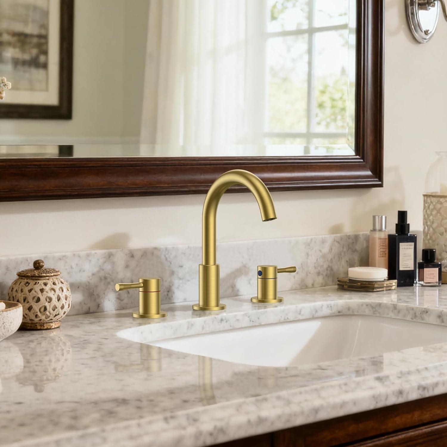 FORIOUS 8 inch Bathroom Sink Faucet, Widespread Vanity Bathroom Faucet with 360° Swivel High Arc Spout, Pop-Up Drain and cUPC Supply Lines Included(Brushed Gold)