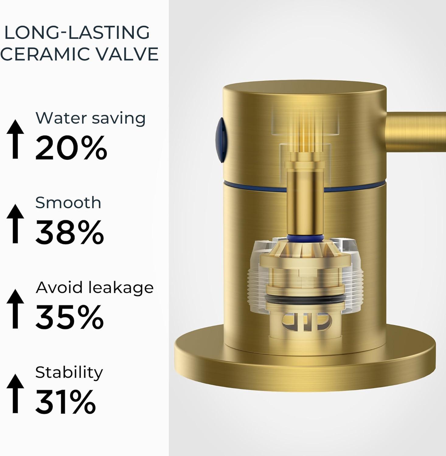 Smooth Flow & Quiet Operation: Experience a serene and splash-free stream with our optimized spout design. The innovative internal structure reduces noise and minimizes water splash, creating a calming atmosphere in your bathroom while saving up to 20% water.