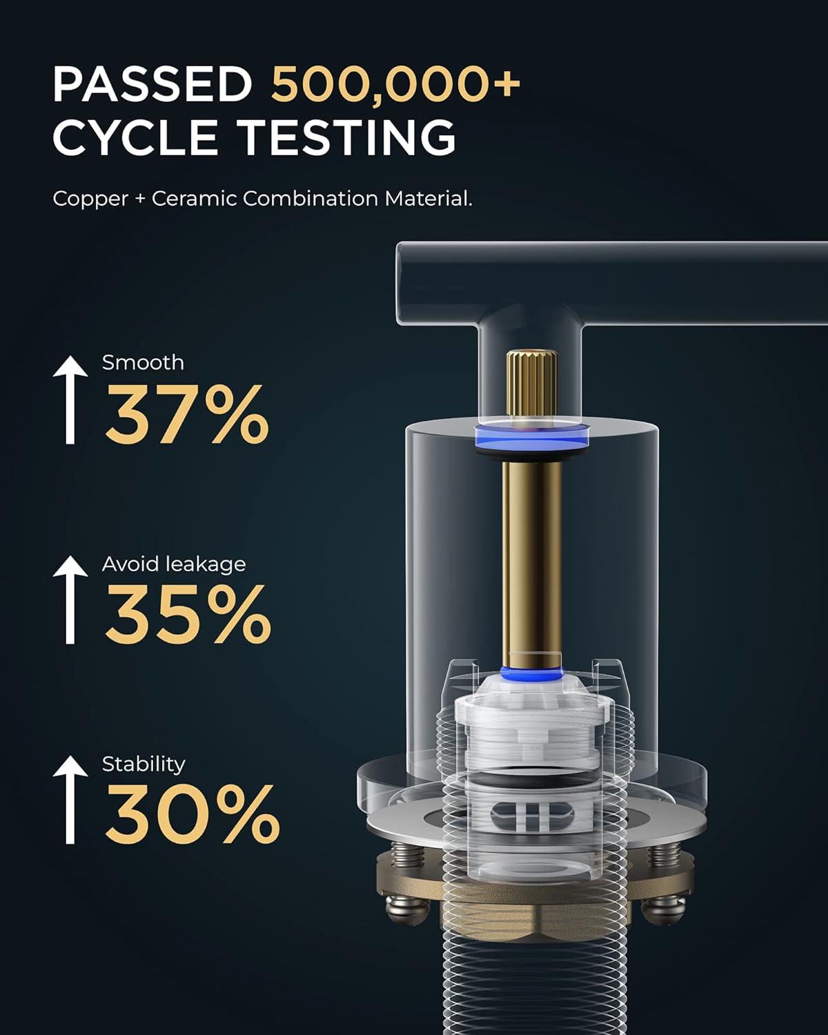 RELIABLE PERFORMANCE: Upgraded mixing cartridge withstands 500K+ cycle testing (3x traditional models). Full cUPC+NSF+ANSI61+WaterSense+DOE+CPF-certified 316 stainless steel brushed gold bathroom faucet ensures safe, healthy water delivery
