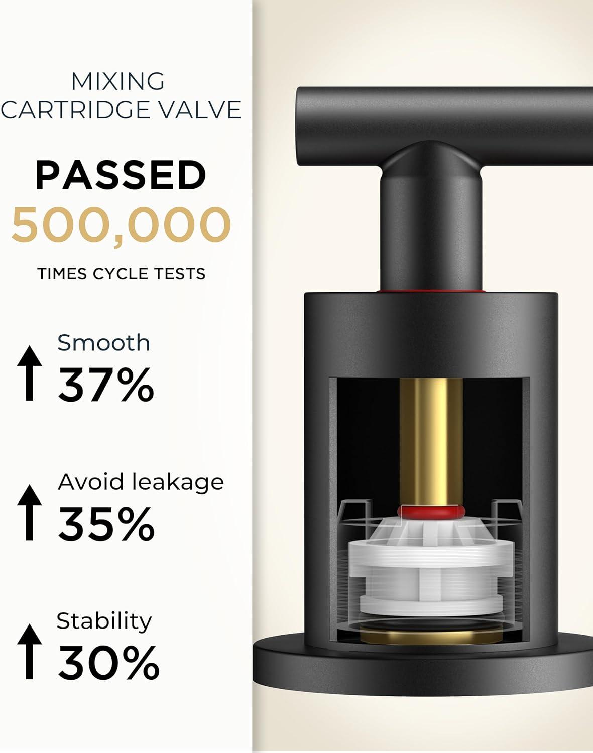 RELIABLE PERFORMANCE: Upgraded mixing cartridge withstands 500K+ cycle testing (3x traditional models). Full cUPC+NSF+ANSI61+WaterSense+DOE+CPF-certified 316 stainless steel brushed gold bathroom faucet ensures safe, healthy water delivery