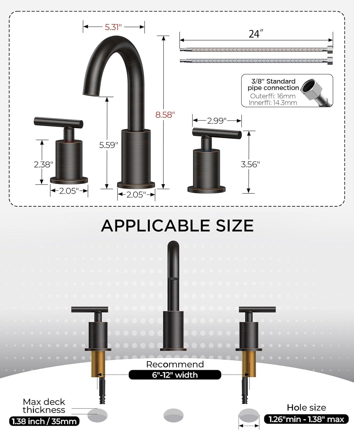 WIDELY FIT: Bathroom faucet 3 hole fits 6-12″ widespread bathroom vanity faucet sinks. Ideal for most 3-hole setups. Gold faucet bathroom adjustable hot/cold handle placement. Note: For 2-hole/4″ sinks, pair with this series’ 4″ centerset faucet FB39035