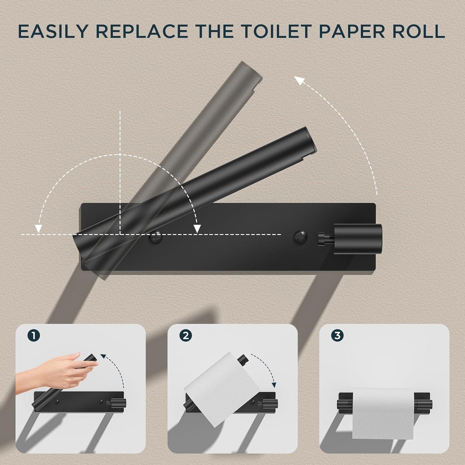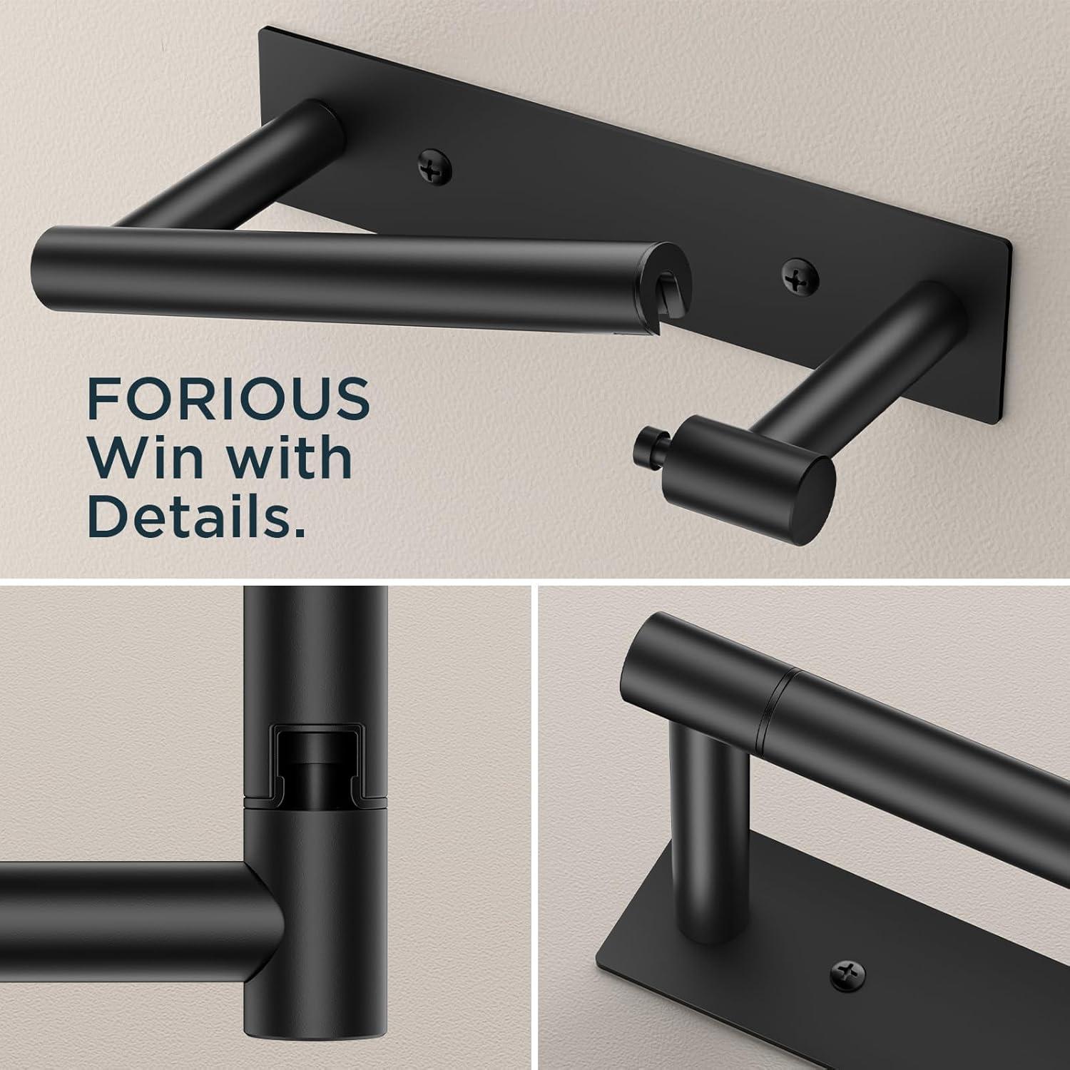 Sleek One-Piece Design: FORIOUS black toilet paper holder features a stylish one-piece design that seamlessly blends with any bathroom or kitchen decor. Its modern aesthetics enhance your space, making it both elegant and functional