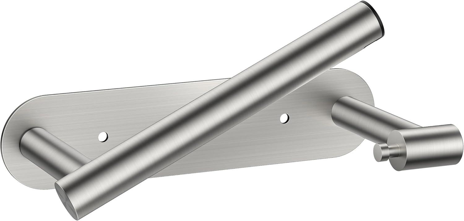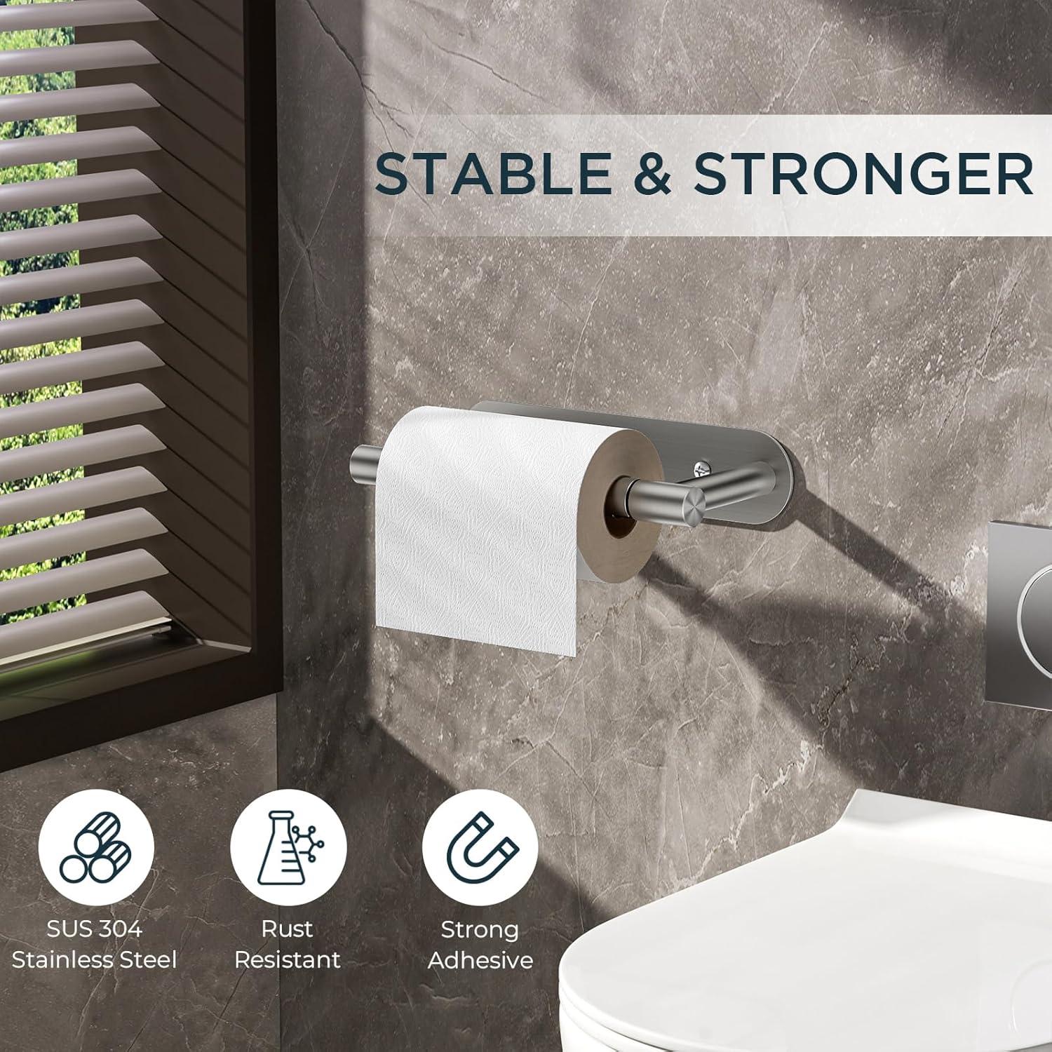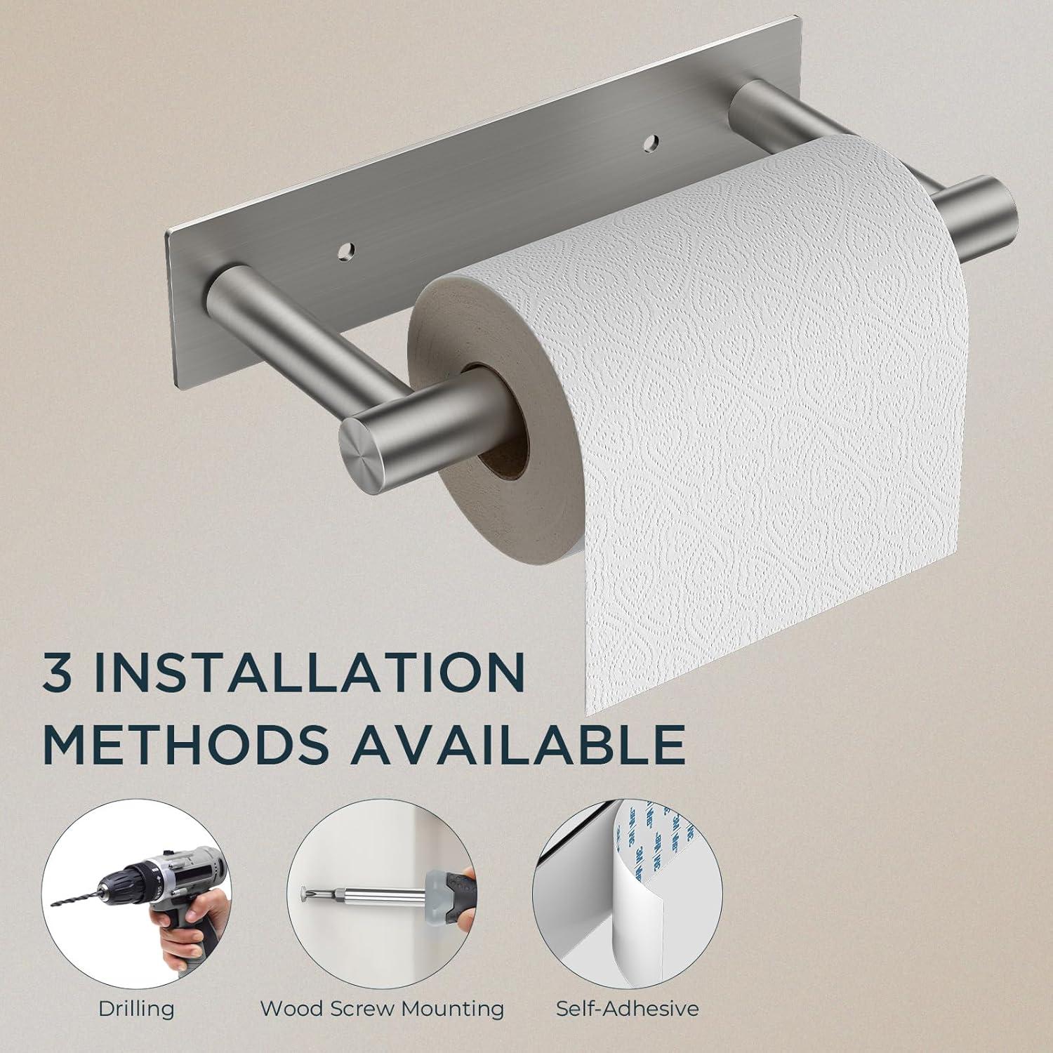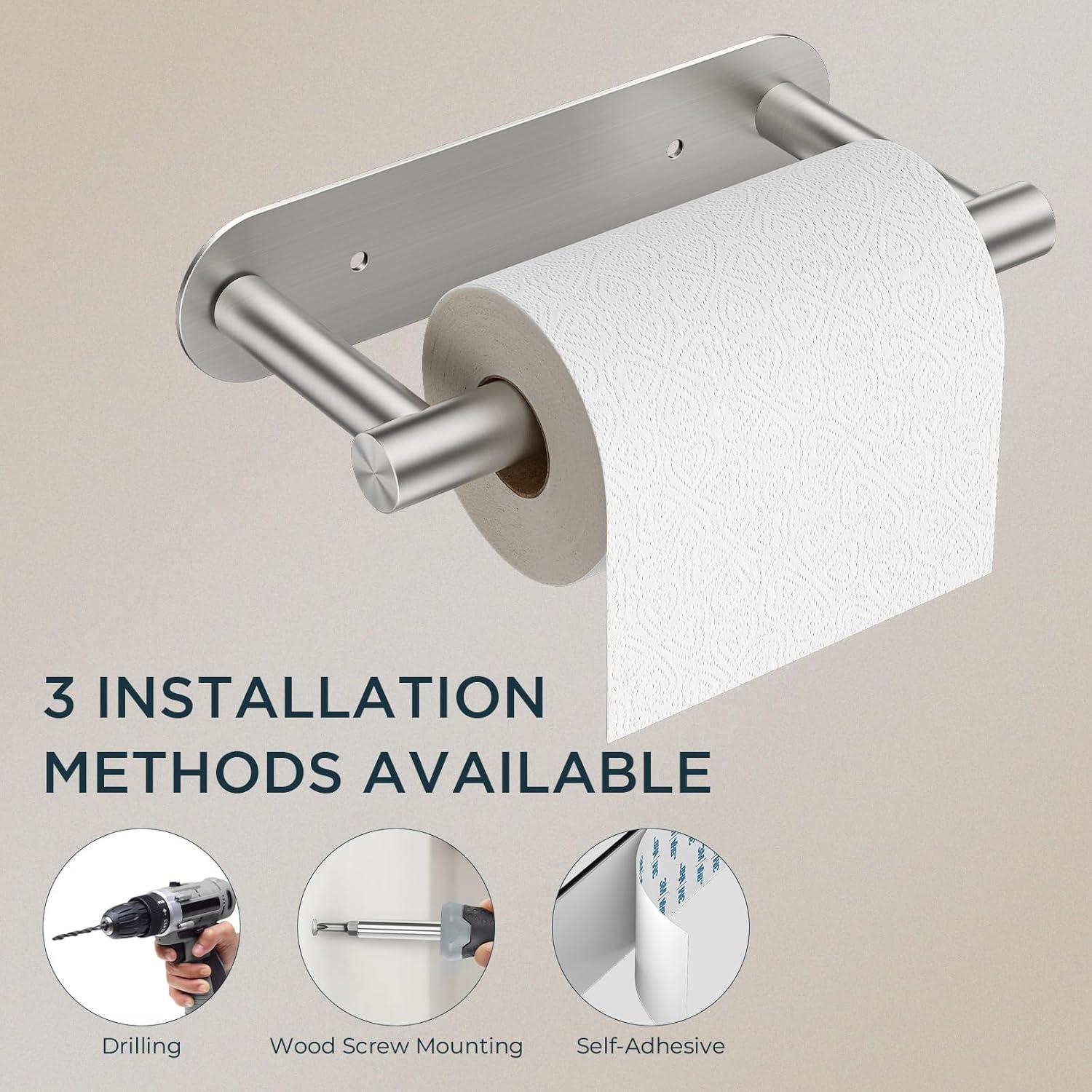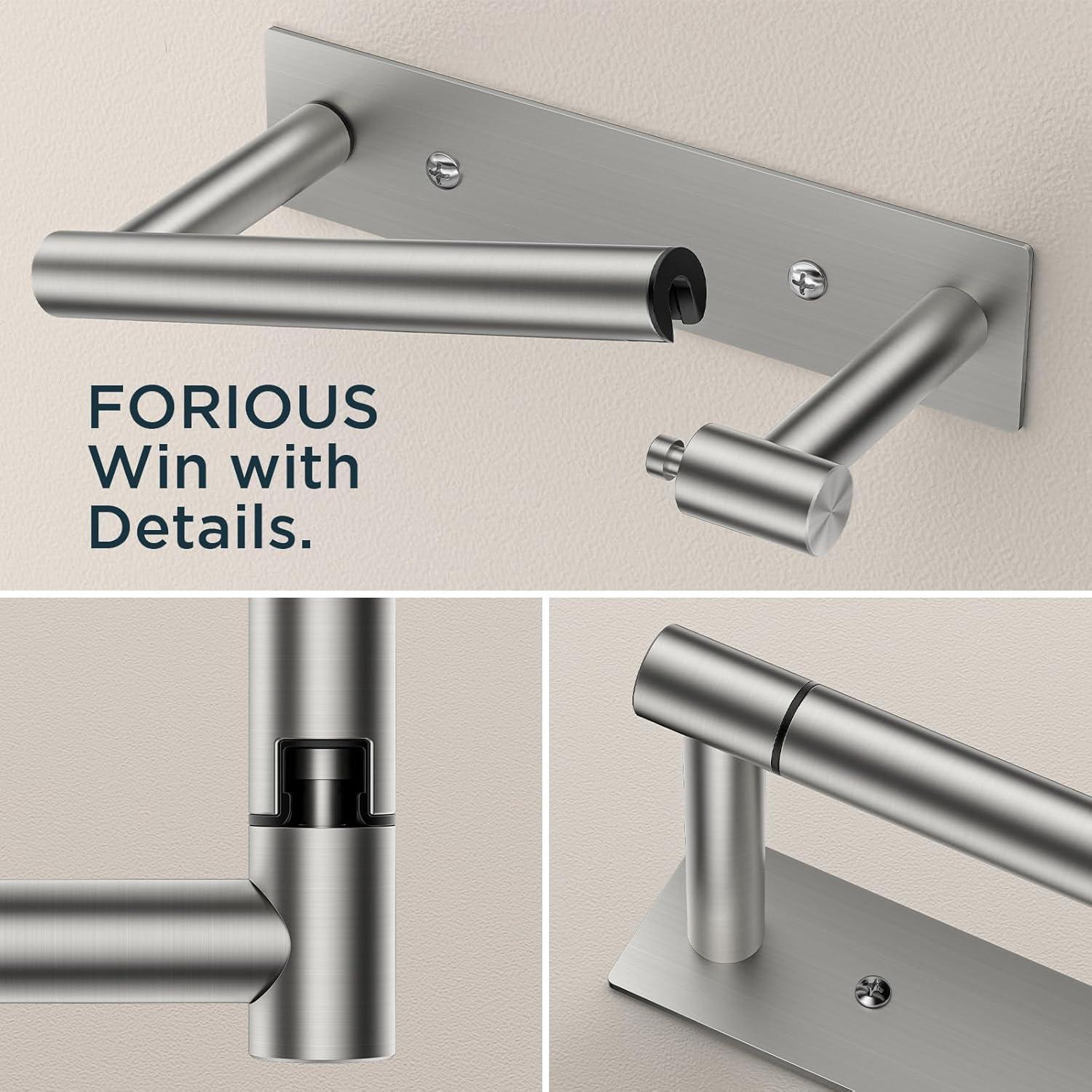 FORIOUS Adhesive Toilet Paper Holder Brushed Nickel, Self Adhesive or Wall Mounted Options, Stainless Steel Rustproof Stick on no Drilling Pivoting Toilet Tissue Roll Holder Wall Mount for Bathroom(Stainless Steel)