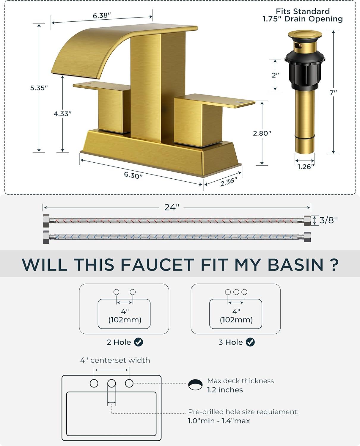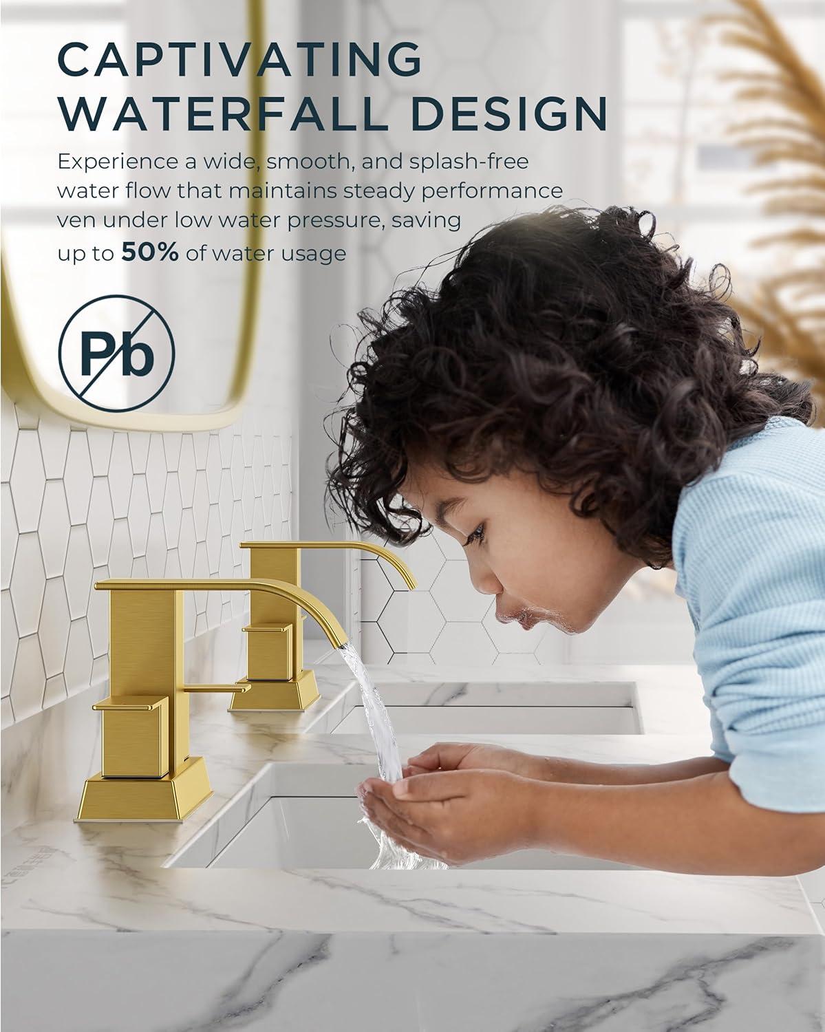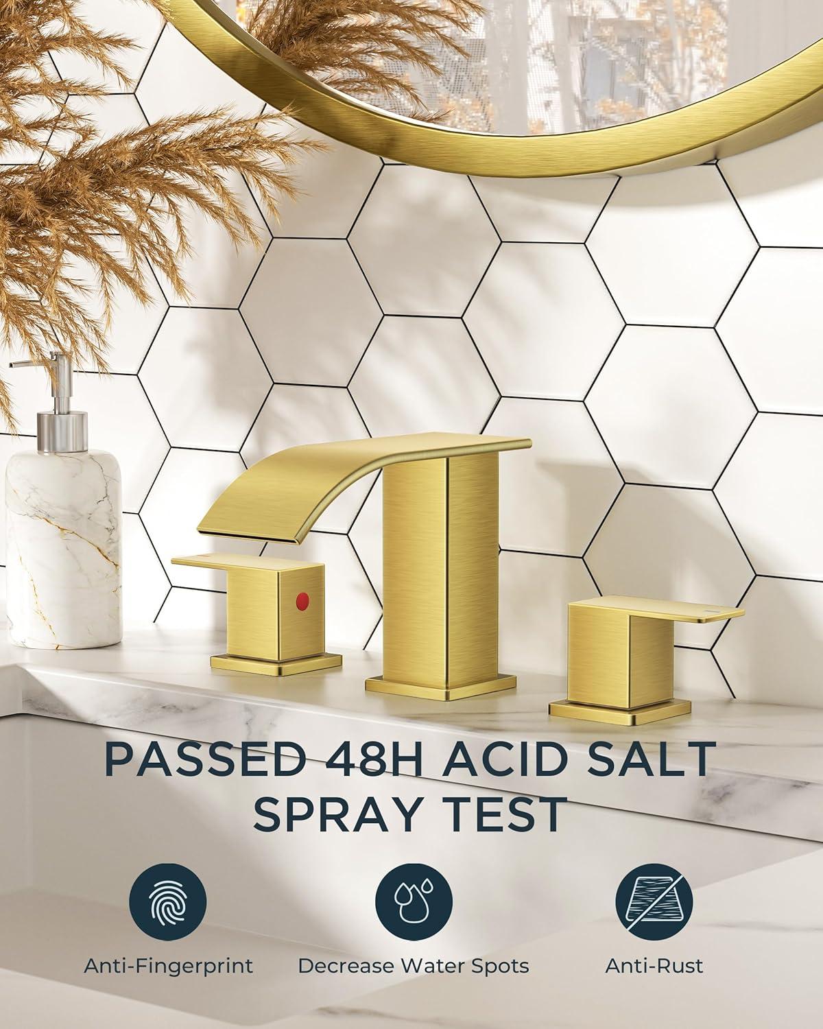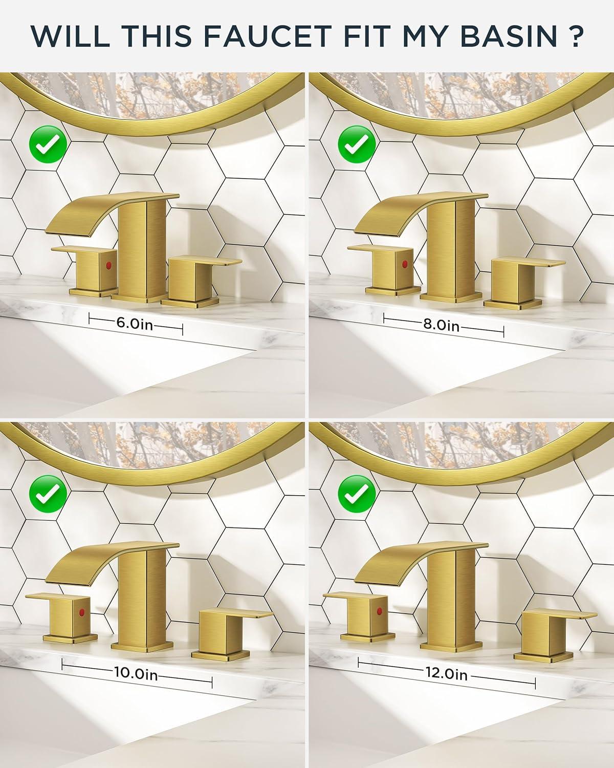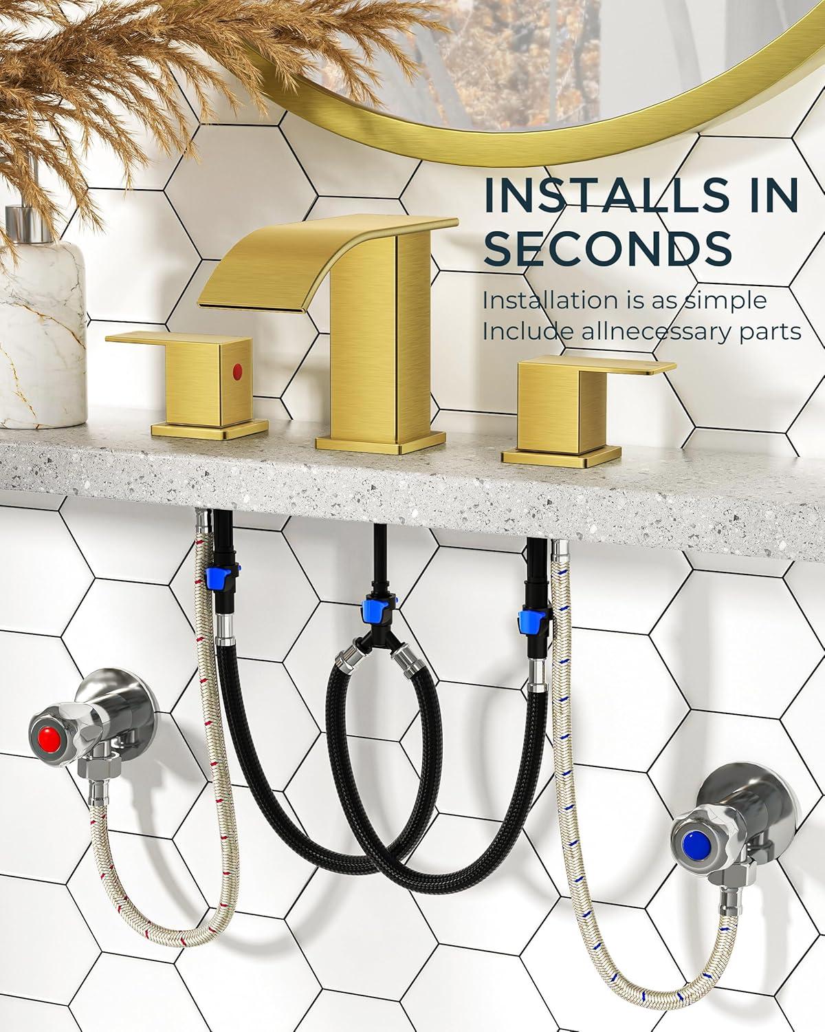 Be the first to review “FORIOUS Black and Gold Bathroom Faucets 3 Hole, Two Handle 8 Inch Widespread Lavatory Vanity Bathroom Sink Faucet with CUPC Hose and Metal Pop-up Drain, Waterfall Spout(Brushed Gold)”