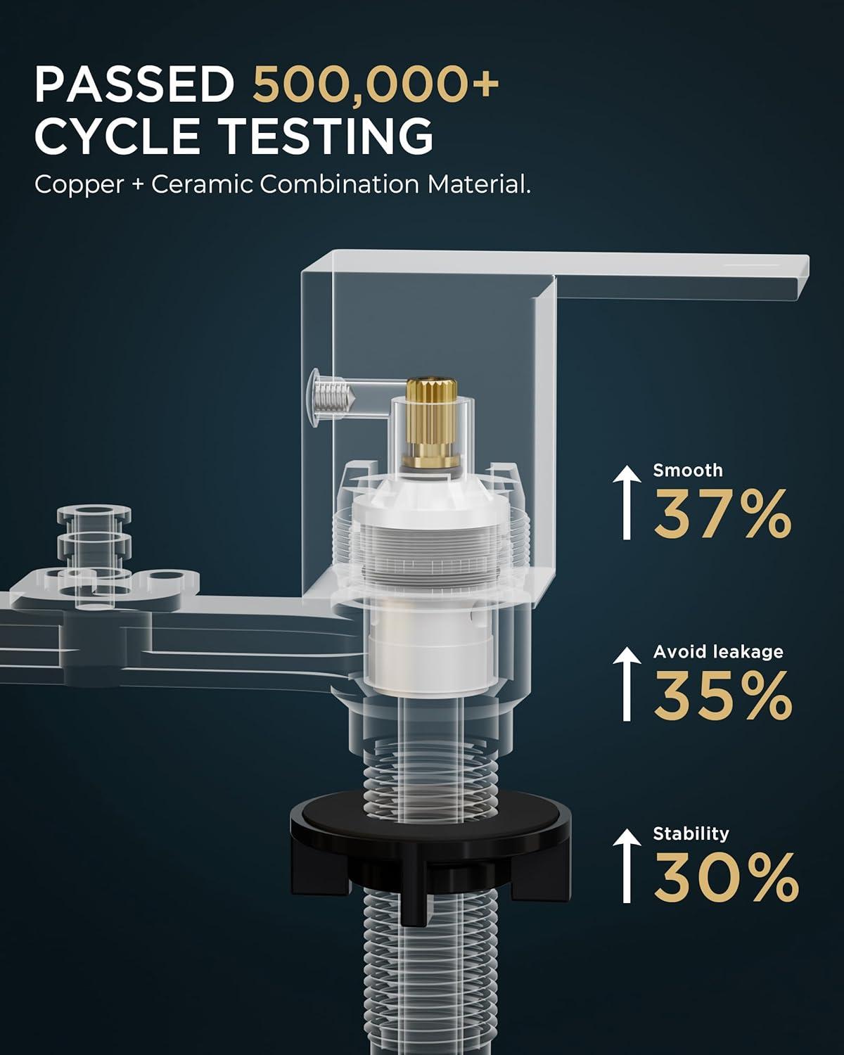 Use with confidence: FORIOUS focuses on bathroom faucet quality details, its finish has passed the 24h acid salt spray test and also has added anti-rust treatment. It also passed CEC certification and CUPC lead-free certification