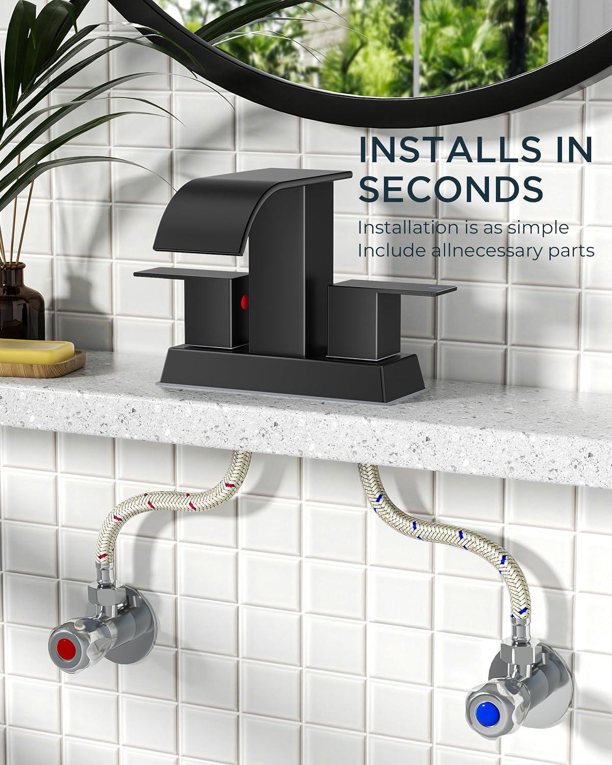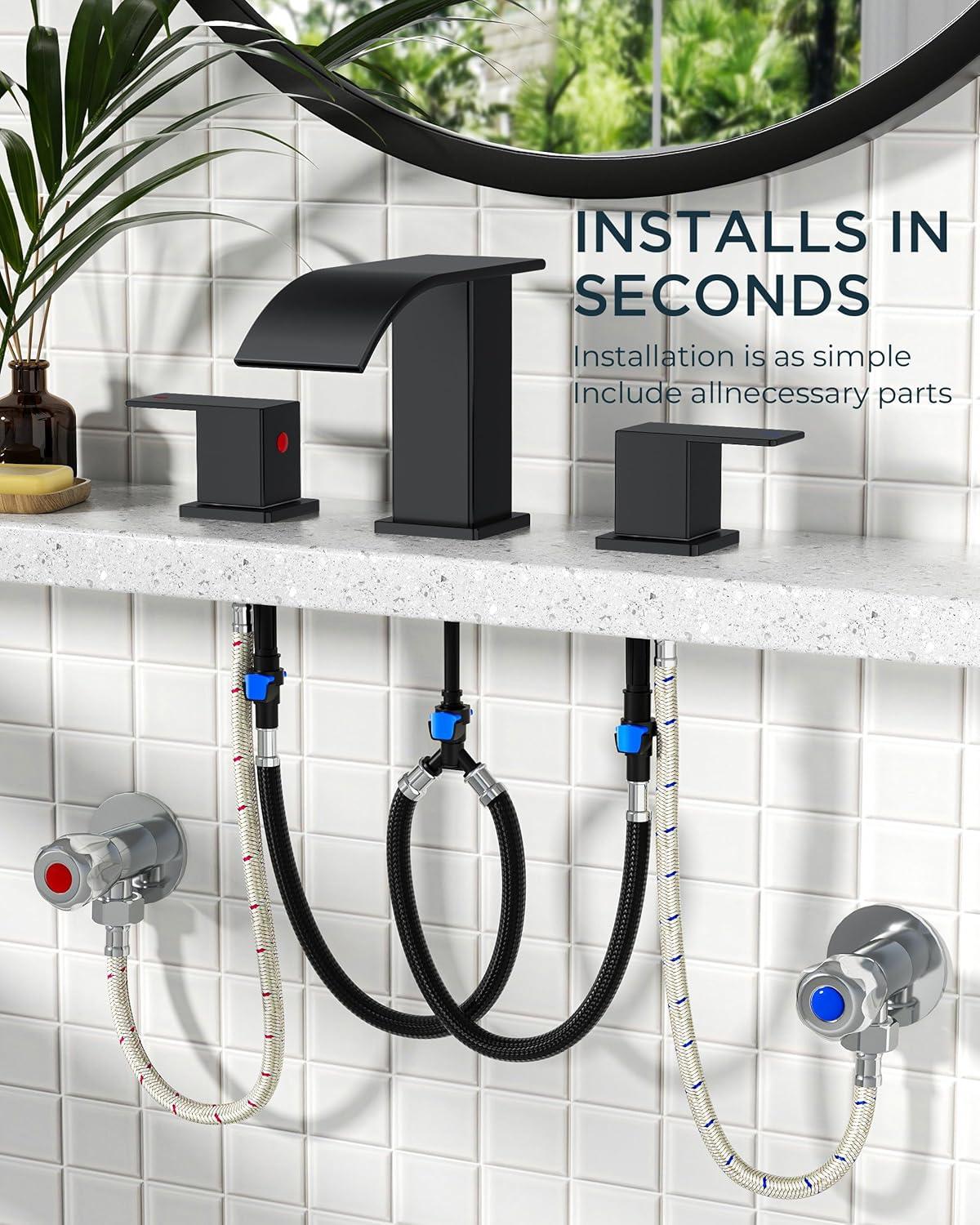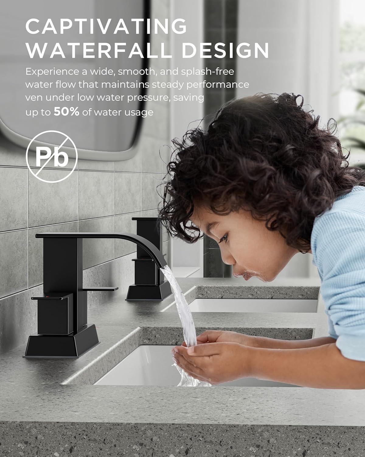 Be the first to review “FORIOUS Black and Gold Bathroom Faucets 3 Hole, Two Handle 8 Inch Widespread Lavatory Vanity Bathroom Sink Faucet with CUPC Hose and Metal Pop-up Drain, Waterfall Spout(Matte Black)”