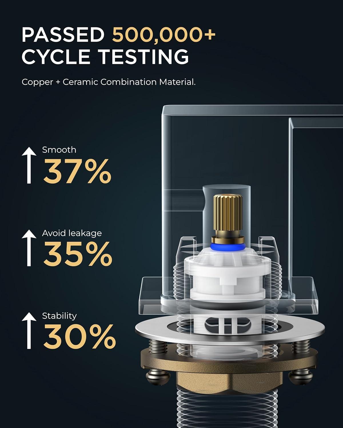 Use with confidence: FORIOUS focuses on bathroom faucet quality details, its finish has passed the 24h acid salt spray test and also has added anti-rust treatment. It also passed CEC certification and CUPC lead-free certification