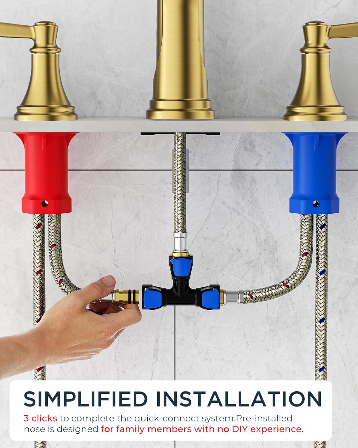 10-Min DIY: The bathroom sink faucet has pre-installed CUPC hoses & 3 quick-connect clips. This 3 hole bathroom faucet Includes multifunctional torque wrench and oversized nuts, for 4″-16″ sinks faucet bathroom design (ASME A112.18.1 compliant)