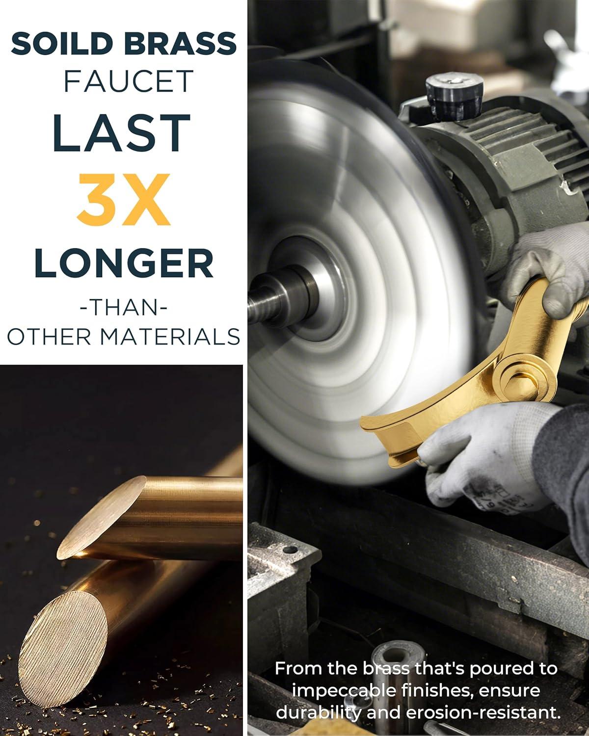 Long-lasting: CNC-machined lead-free brass (ASTM B584) naturally withstands harsh environments. Our battle-tested triple-layer electroplating (MIL-STD-810G ) forms an ultra-protective shield that laughs off hard water, moisture, oxidation, rust and time – ensuring your faucet stays pristine year after year