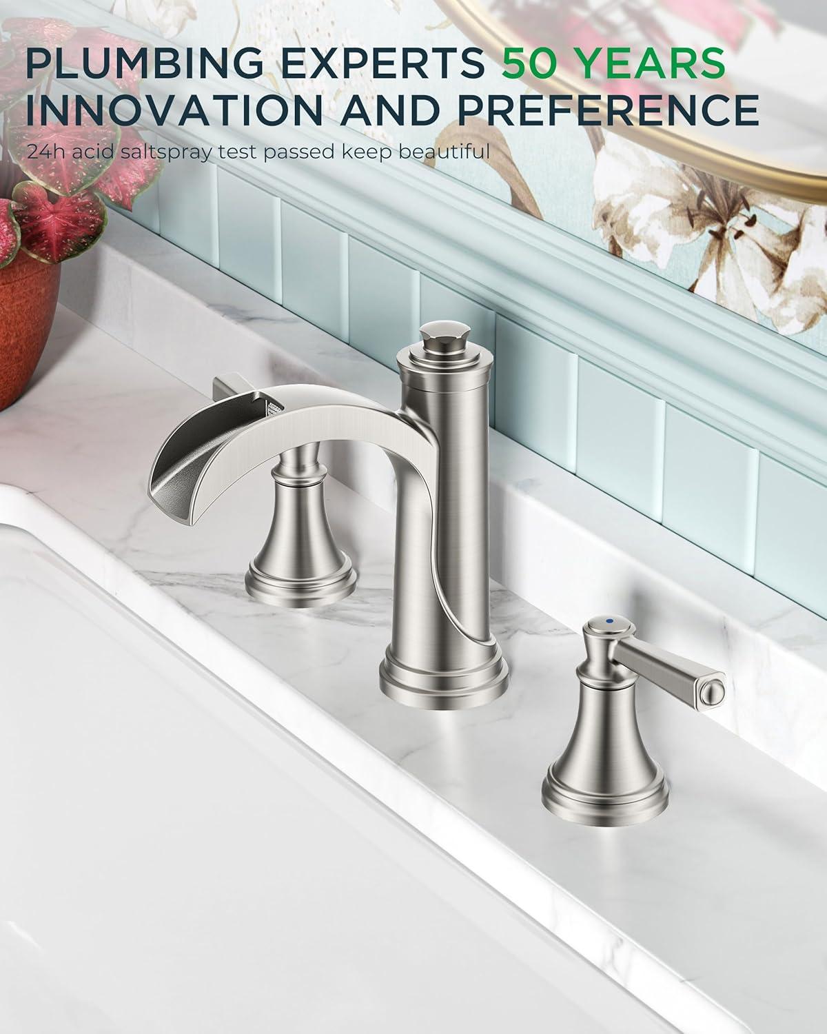 Be the first to review “FORIOUS Black Bathroom Faucet 3 Hole, 2 Handle Brass 8 Inch Widespread Matte Black Bathroom Sink Faucet Waterfall with Pop-up Drain and CUPC Flexible Hoses, Vanity Tap 3 Holes(Brushed Silver)”