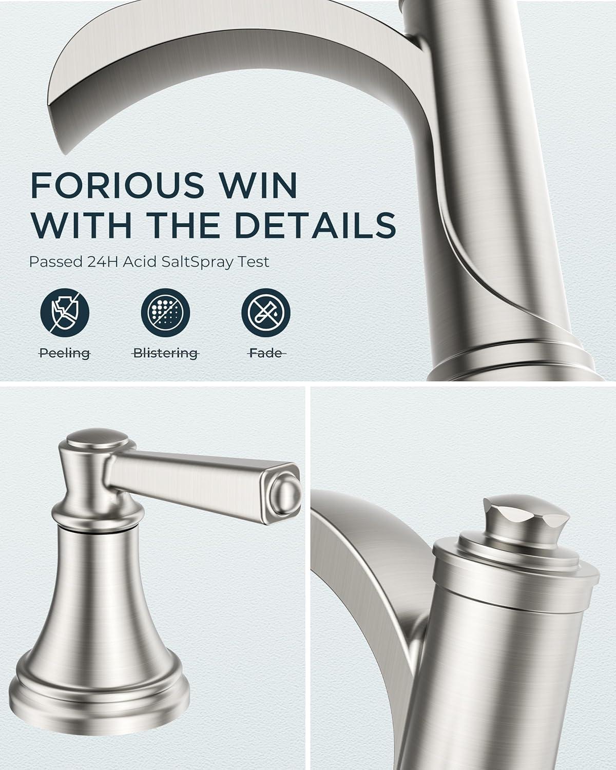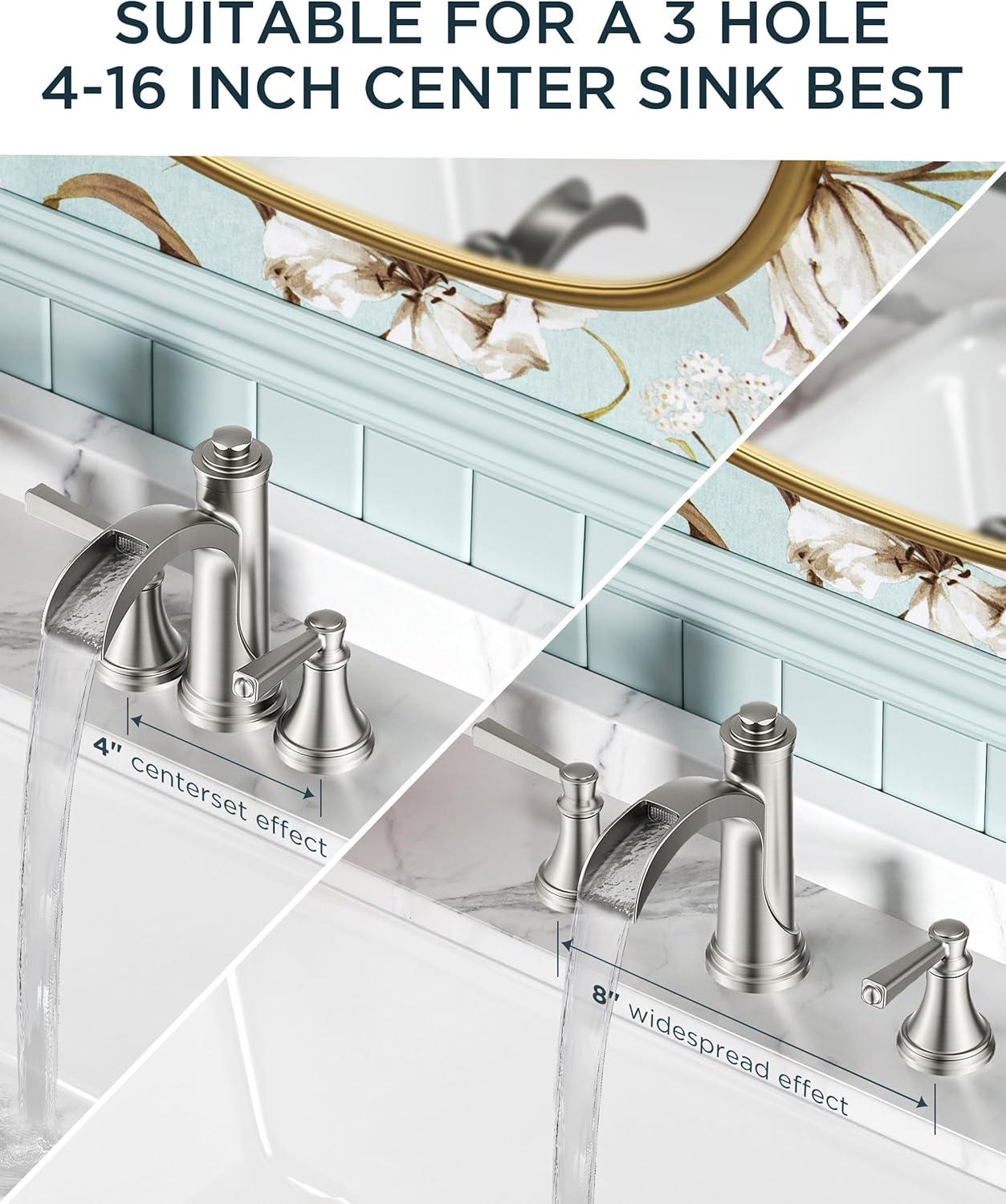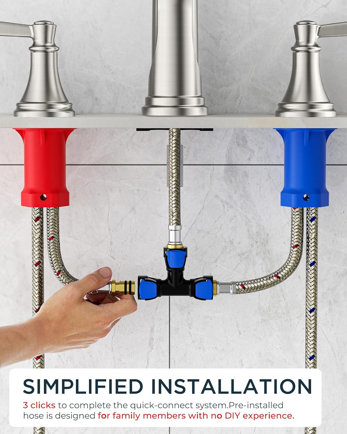 10-Min DIY: The bathroom sink faucet has pre-installed CUPC hoses & 3 quick-connect clips. This 3 hole bathroom faucet Includes multifunctional torque wrench and oversized nuts, for 4″-16″ sinks faucet bathroom design (ASME A112.18.1 compliant)
