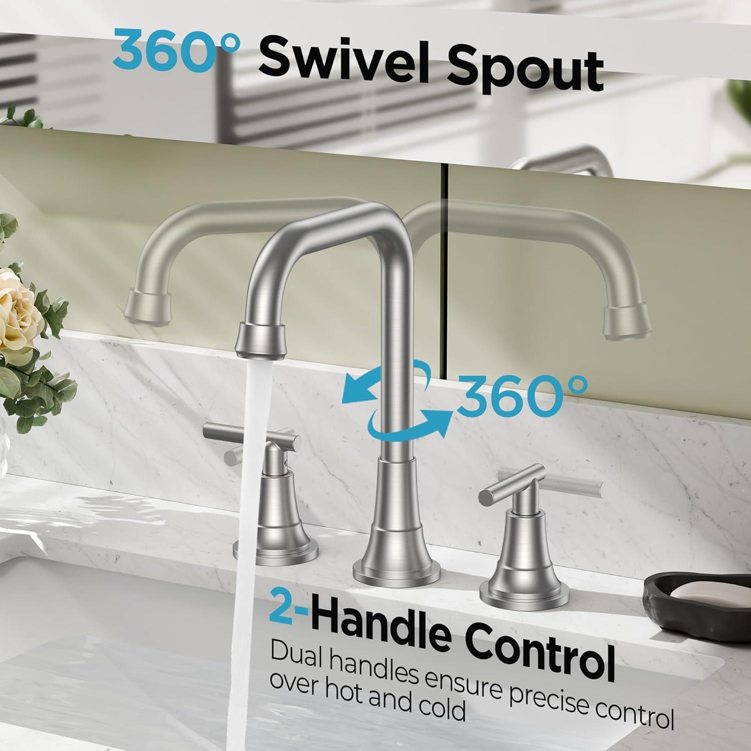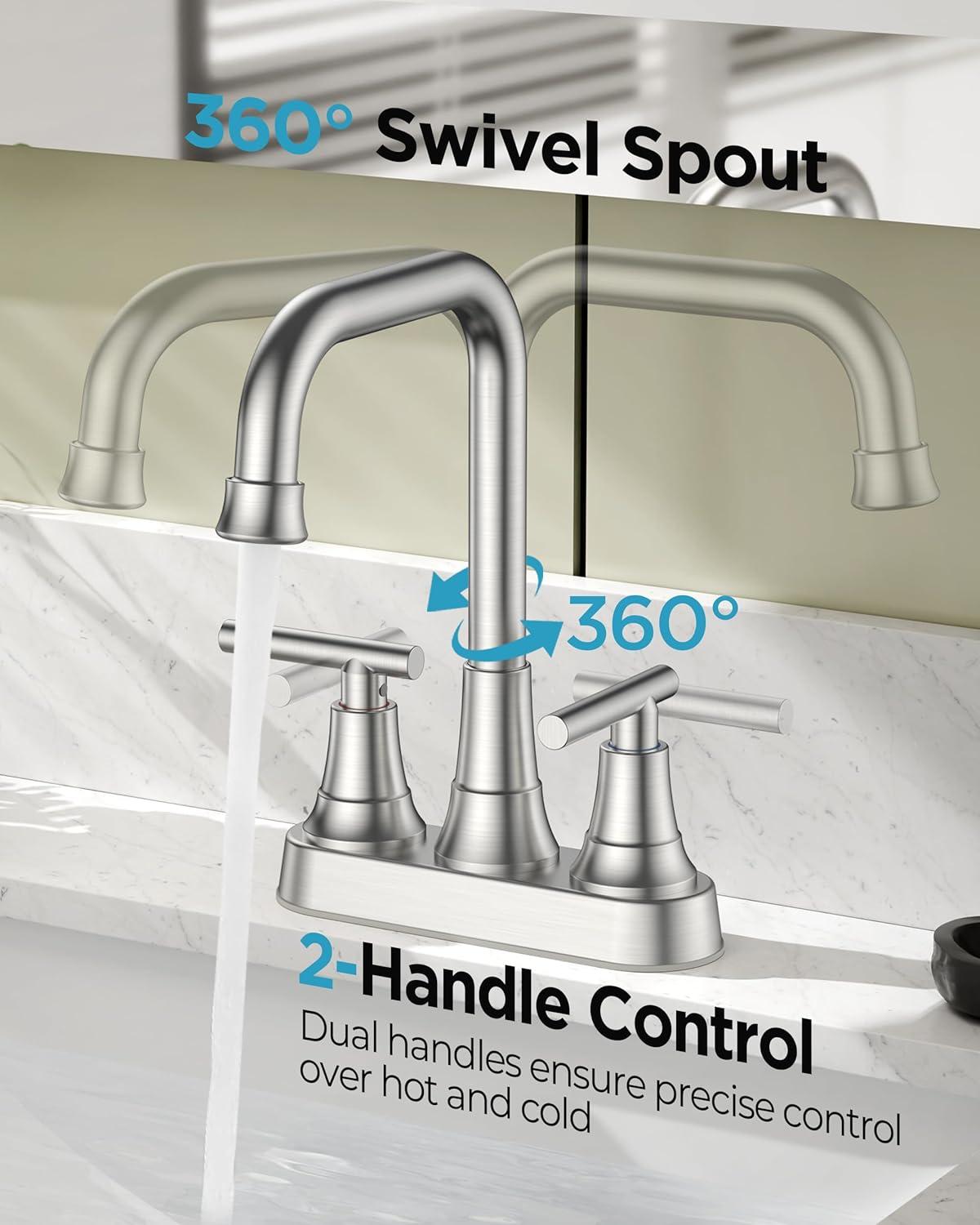 SMOOTH OPERATION: Two handles of our bathroom faucets offer easy control of water temperature and flow, ensuring effortless adjustments. The 360° rotation design of bathroom faucets 3 hole increases the cleaning area, providing ample space to clean every corner of your basin.