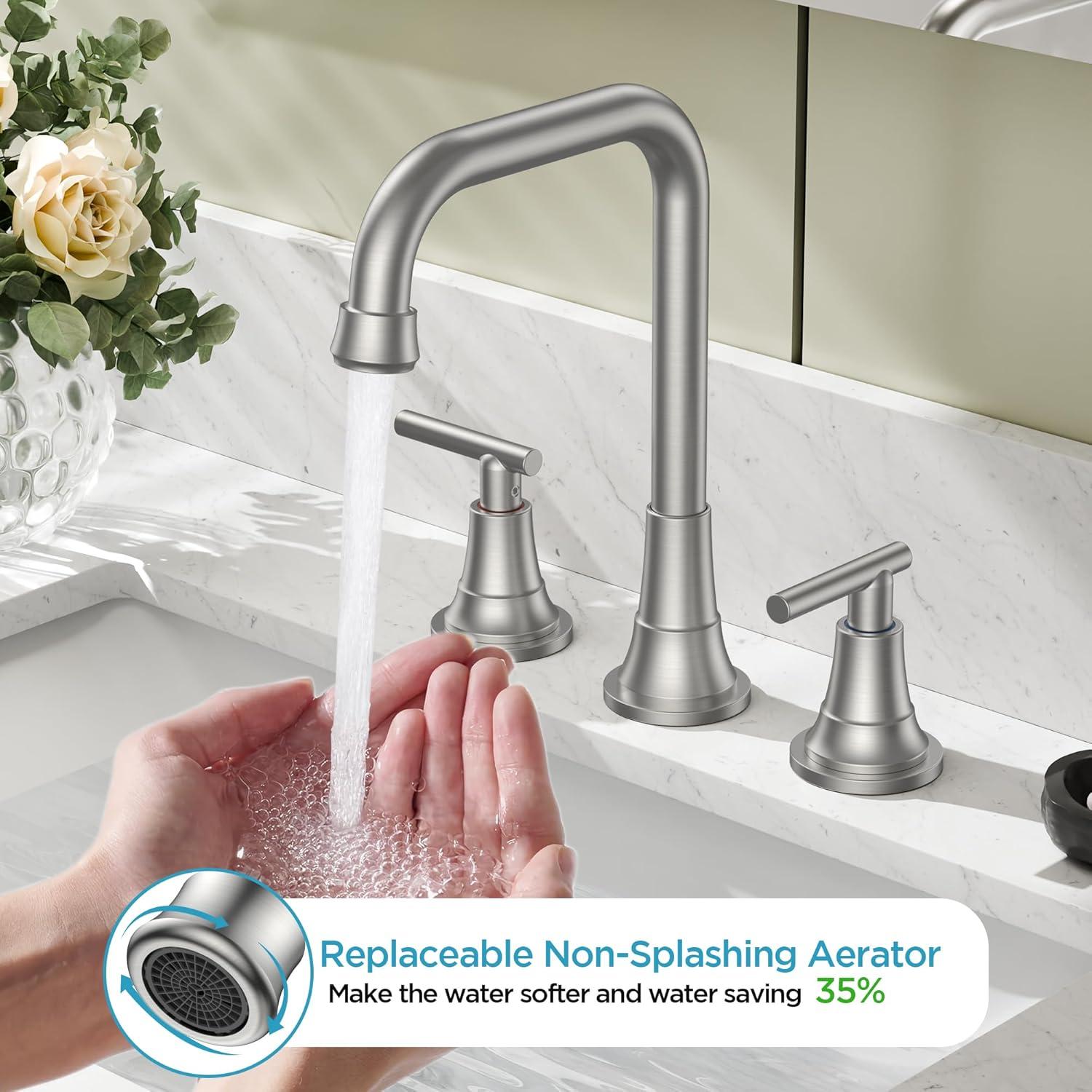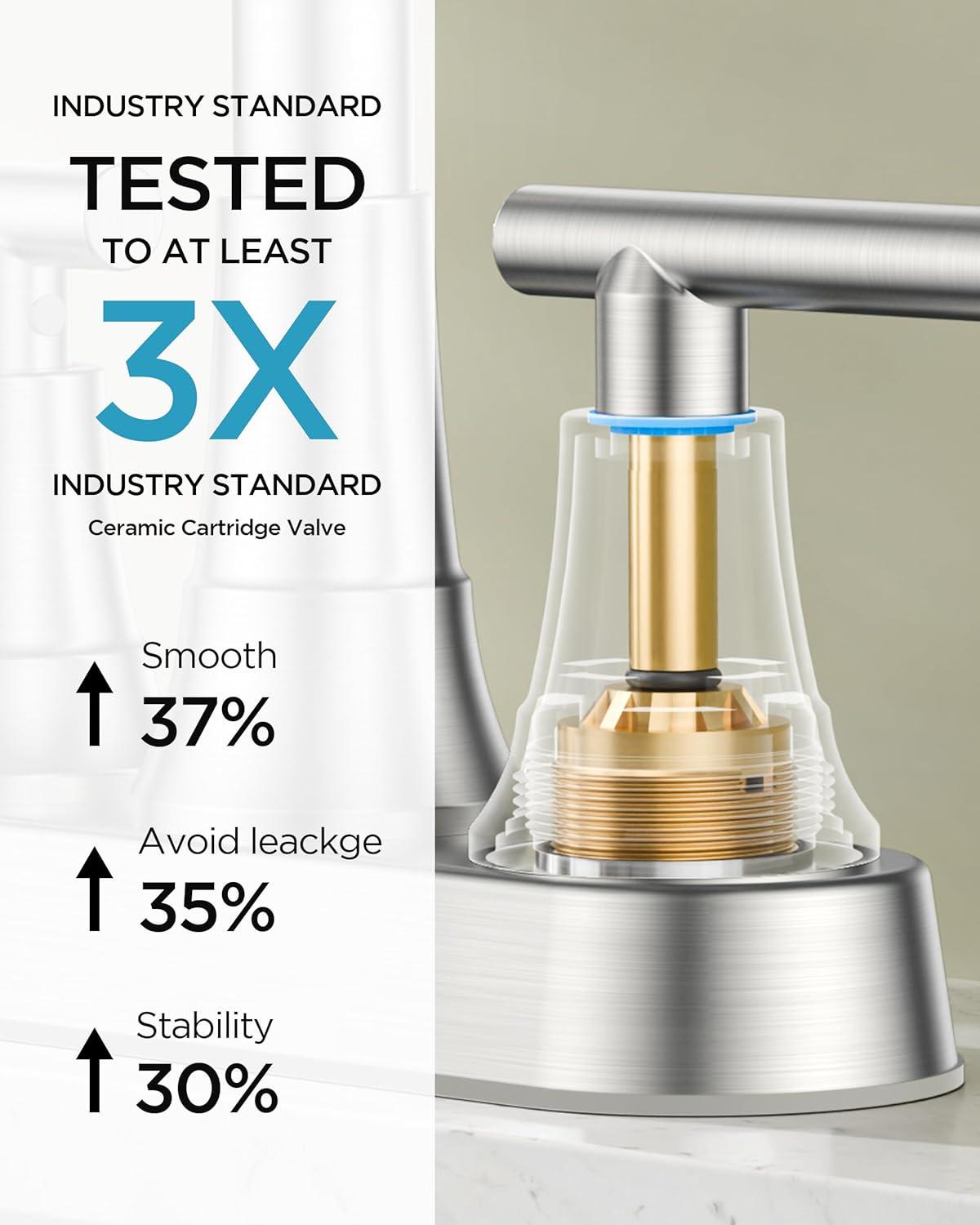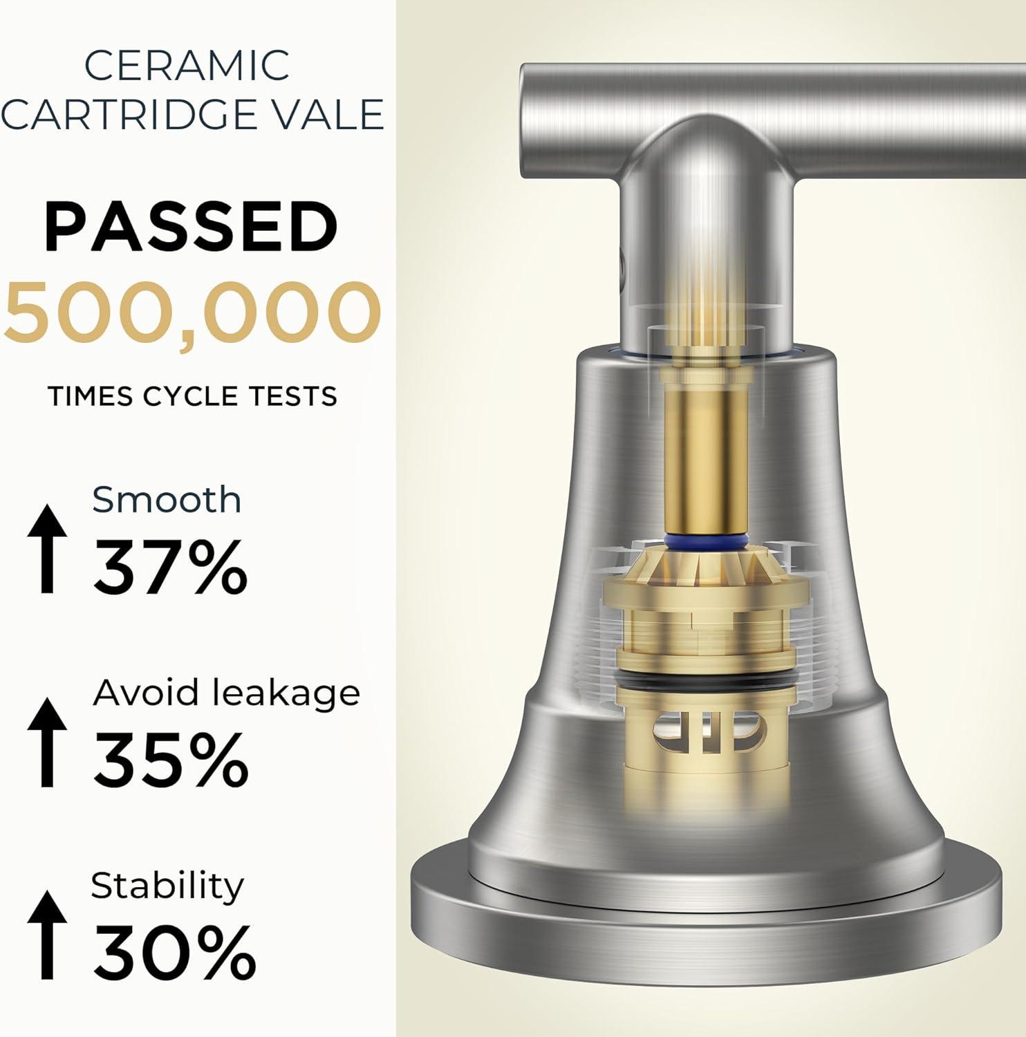 DUREABLE WIDESPREAD BATHROOM FAUCETS: Drip-free ceramic valves tested for 500,000 cycles and extreme temperatures. Corrosion and tarnish-resistant finishes of bathroom sink faucet for long-lasting performance.