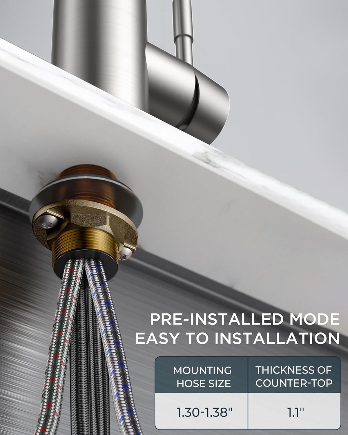 Easy to Clean, Simplify Your Life — Our stainless steel pull-out bar kitchen faucet features a five-layer nanotechnology finish that resists fingerprint and spotting. Maintain its pristine look with just a simple wipe using a damp cloth