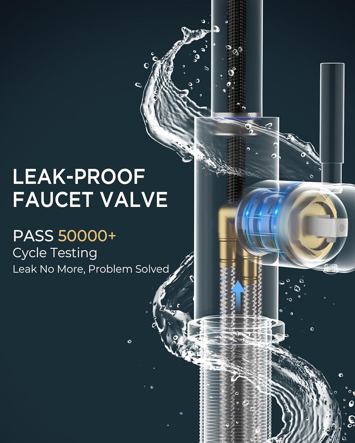 Lead-free Material — Our kitchen faucet is made from premium SUS 304 stainless steel for longevity use, and features a ceramic cartridge tested over 5 million times for leak-proof performance. Flow Rate: 1.8 Gallons Per Minute, saving 20% water