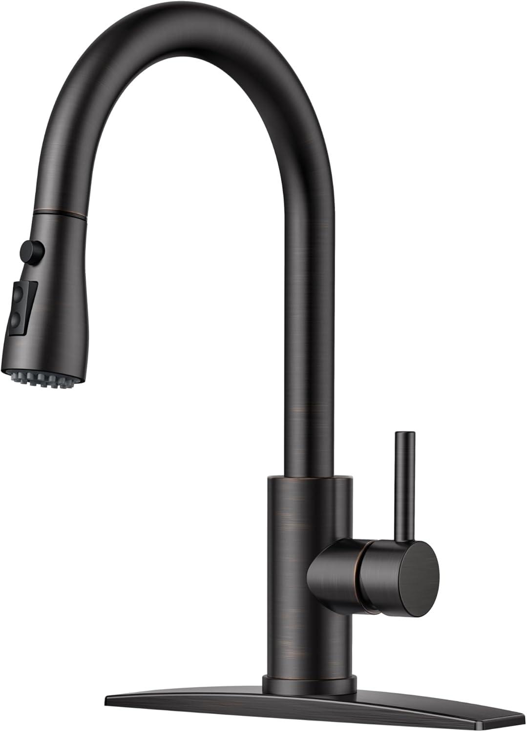FORIOUS Black Kitchen Faucet with Soap Dispenser and Pull Down Sprayer, Bar High Arc Single Handle Classic 3 Modes Stainless Steel Faucet for Kitchen Sink Farmhouse RV Laundry Camper(Oil Rubbed Bronze)