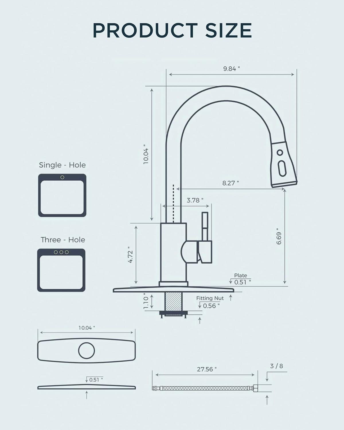 DIY Friendly Installation — Install our bar sink faucet effortlessly in under 15 minutes without professional assistance, it includes a 10-inch detachable deck plate for one or three holes kitchen sinks, and all Mounting hardware for a hassle-free setup