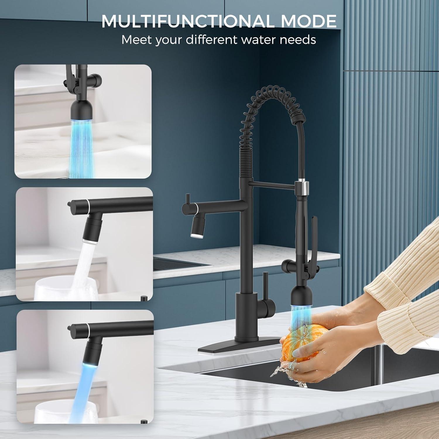 Multifunctional Design – The faucet for kitchen sink featuring a crossbar design gives you additional space in the kitchen for towels or other small kitchen items. The spray head lock feature increases washing efficiency by allowing one-handed operation or free hands. There is an extra LED stream nozzle included, and you may switch between LED and regular mode to suit different style requirements.