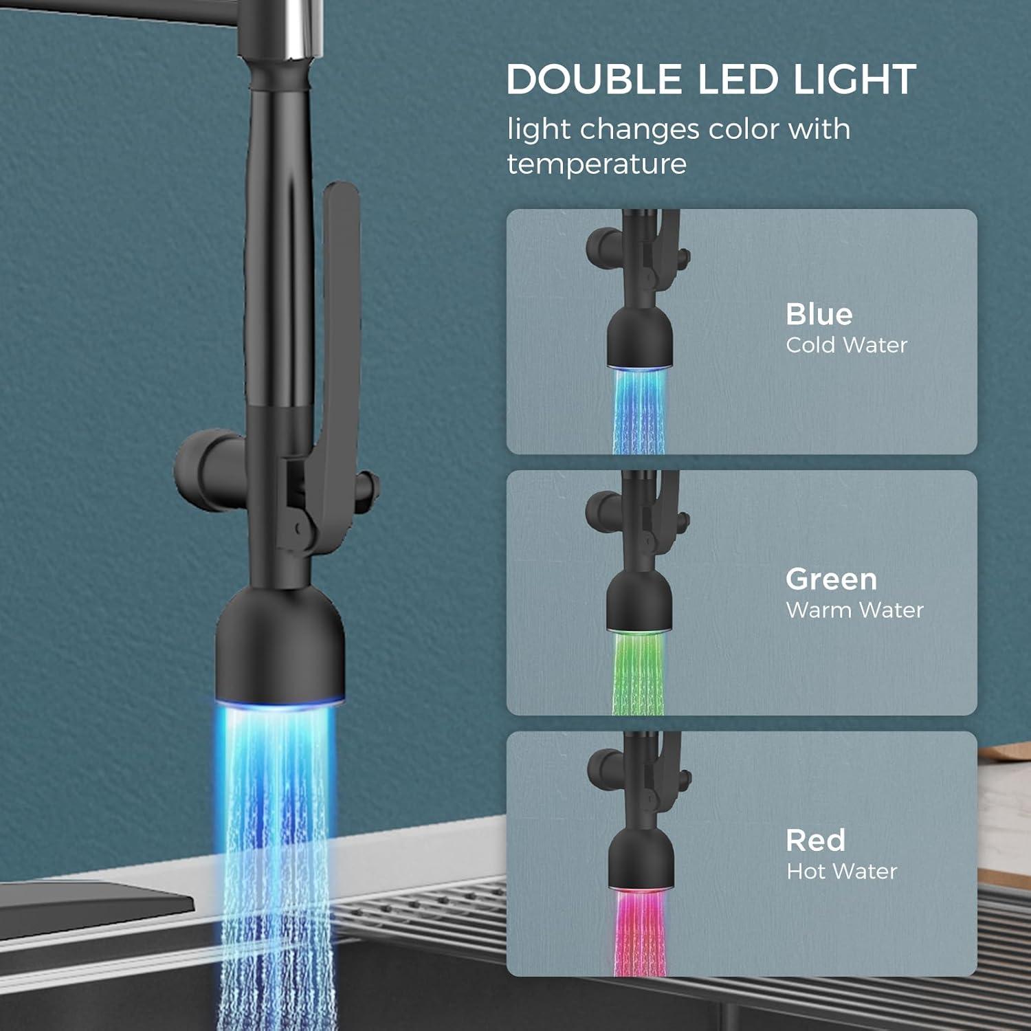 Led Kitchen Faucet – The LED lights in the kitchen faucet is battery-free and works by water flow. The LED lights that show the water's temperature change are quite helpful and serve as a safety feature. Keep your family safe from cold and hot water, especially the elderly and children.