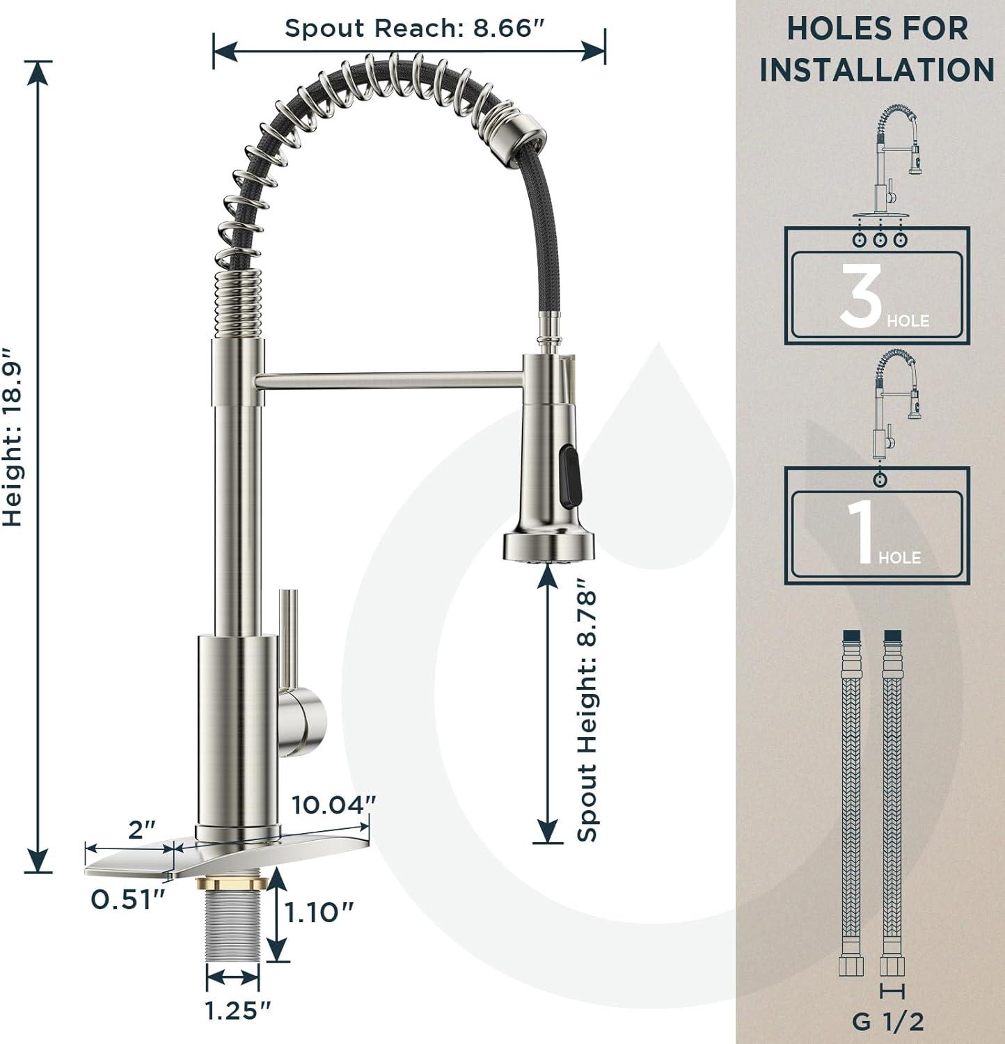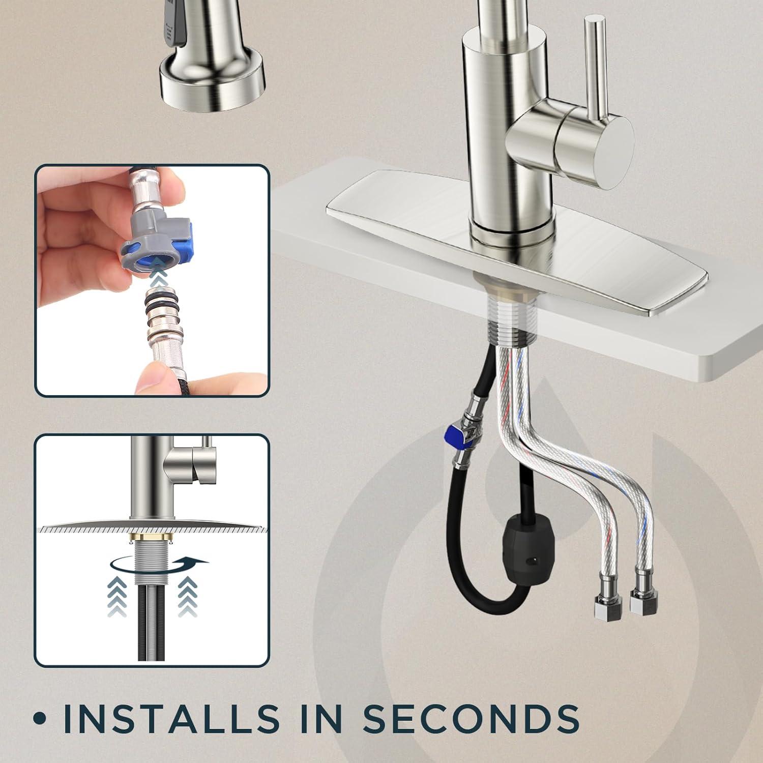 【DIY-Friendly Installation】Included a deck plated suitable for 1 or 3-hole sinks. All necessary installation tools are included, just install it yourself in around 30 minutes by yourself, eliminating the need for a costly plumber