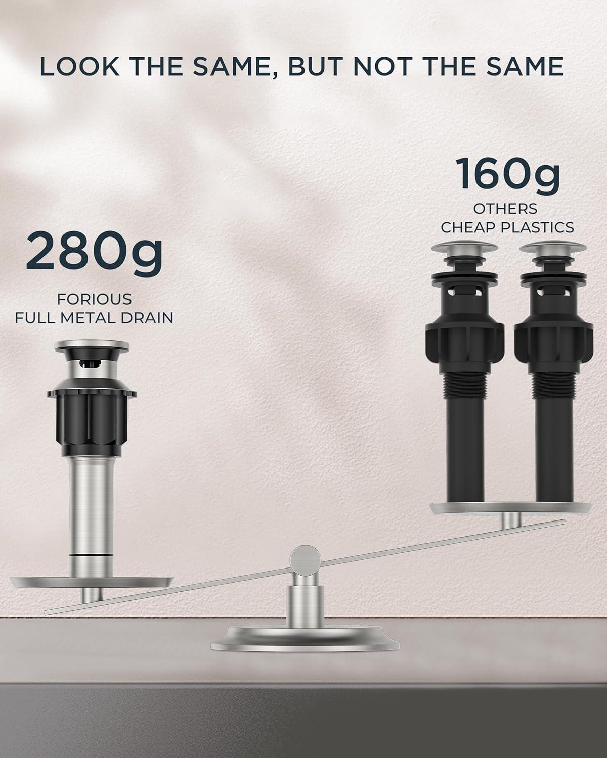TRULY ALL-INCLUSIVE: The 8 inch bathroom faucet comes with a premium all-metal pop-up drain kit, suitable for 1.6-1.9″ drain holes and 1.2-2.4″ thickness drain holes. If your sink does not have an overflow, please pay attention to the hole thickness