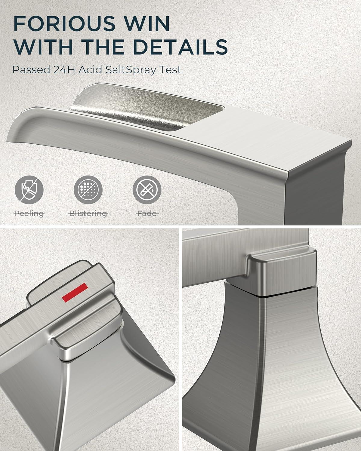 Be the first to review “FORIOUS Brass Waterfall Bathroom Faucet for Sink 3 Hole, 2 Handle Square 8 Inch Matte Black Bathroom Faucet Widespread with Pop-up Drain and CUPC Flexible Hoses, Vanity(Brushed Silver)”