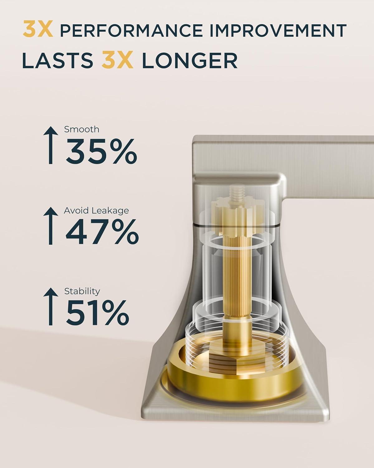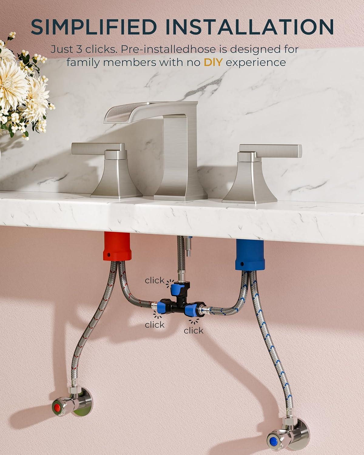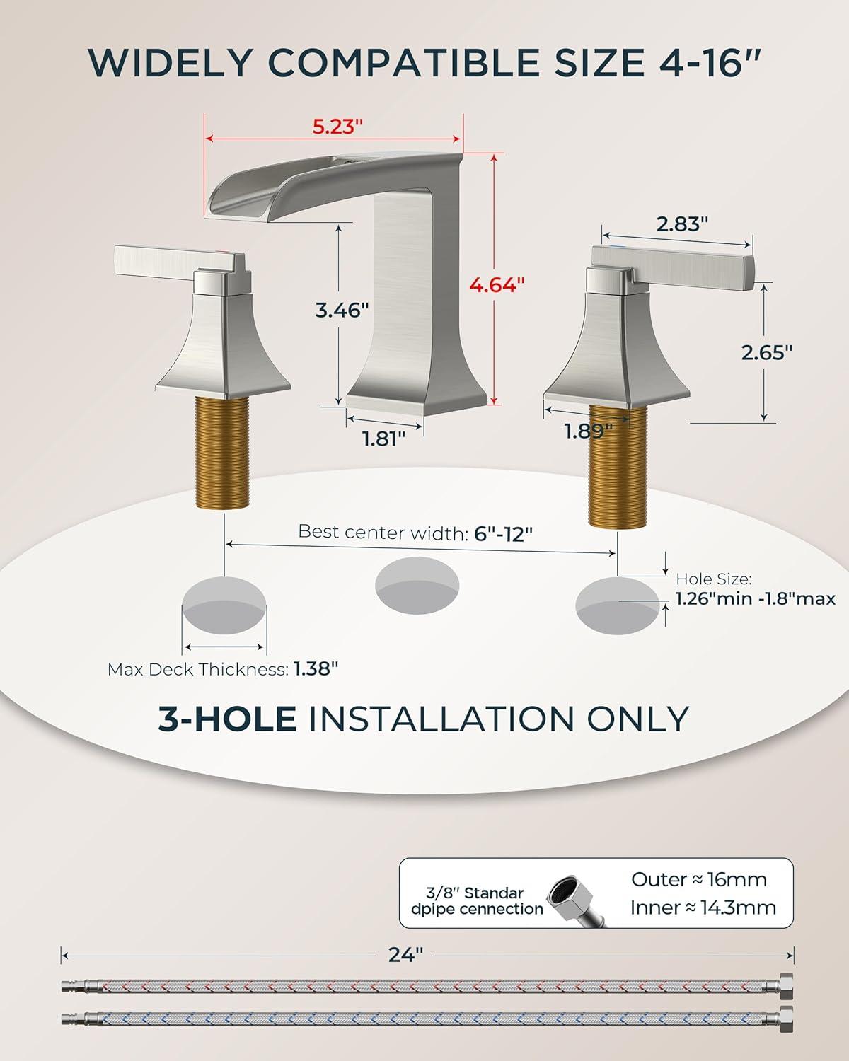 10-MIN SETUP: The centerset bathroom faucet has pre-installed CUPC hoses & 3 quick-connect clips. This 3 hole bathroom faucet Includes multifunctional torque wrench and oversized nuts, for 4-16″ sinks faucet bathroom design (ASME A112.18.1 compliant)