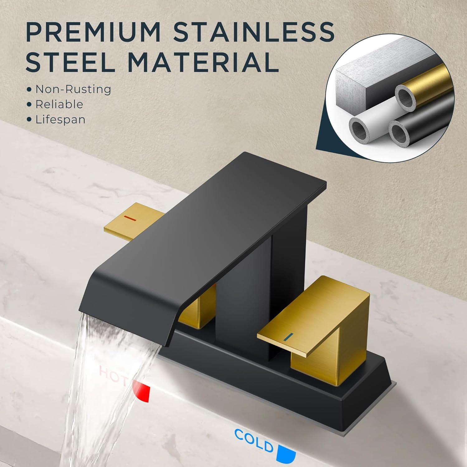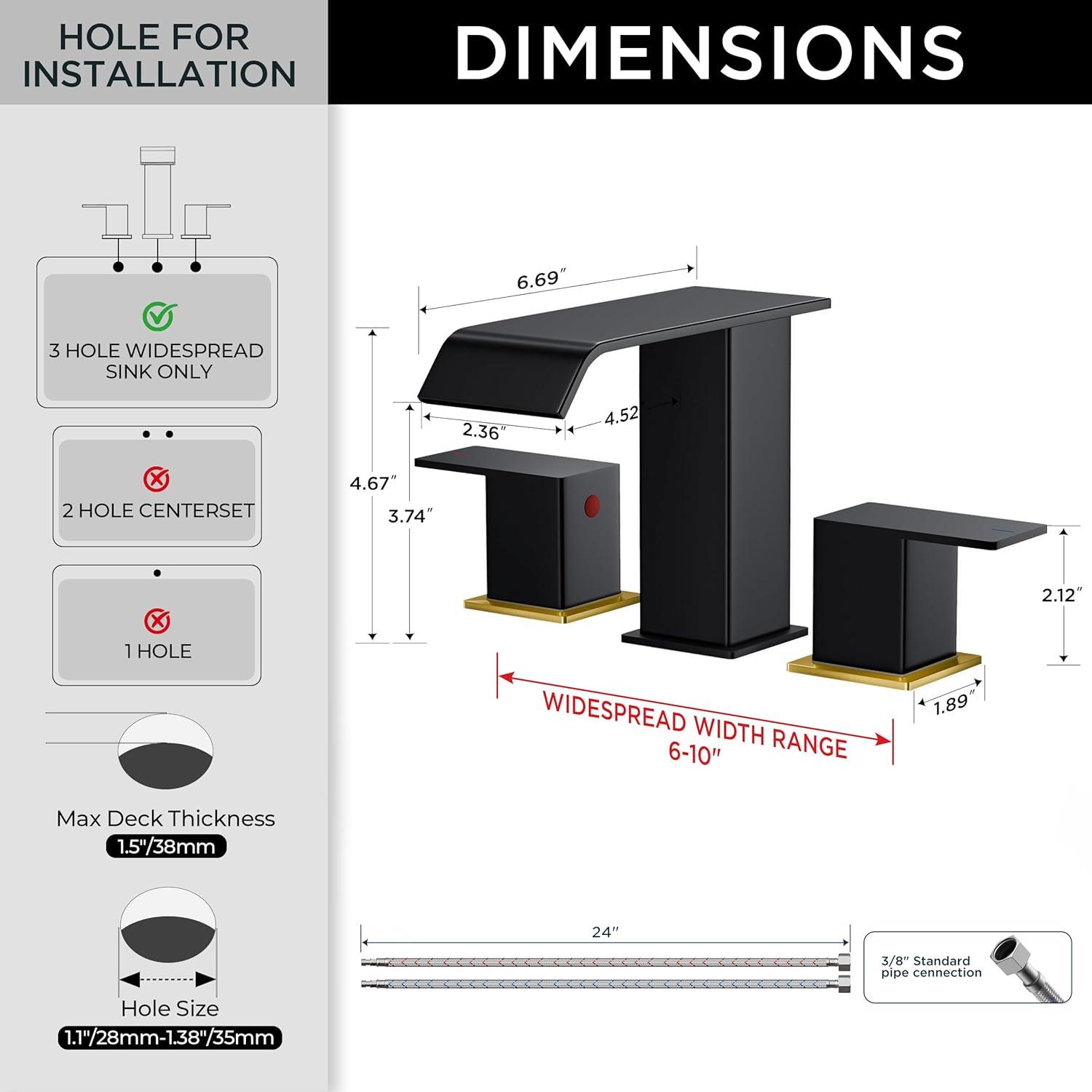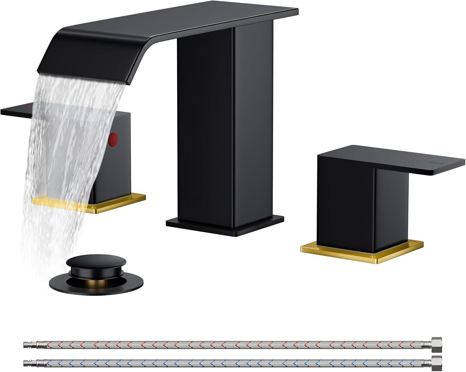 MODERN AESTHETICS: Square waterfall bathroom faucet combines strength and soft beauty, has both modern and natural aesthetics. Suitable for a 3 hole 6-12 inch center sink, and the best installation effect is 6-10 inch. The size is larger, please check your sink hole