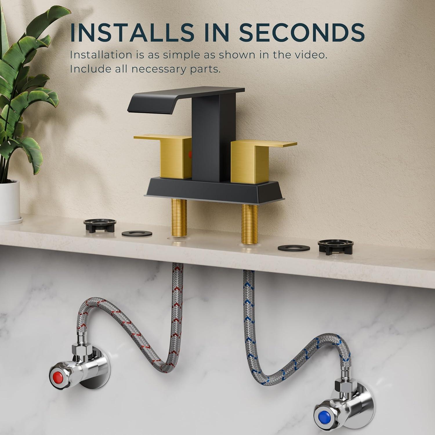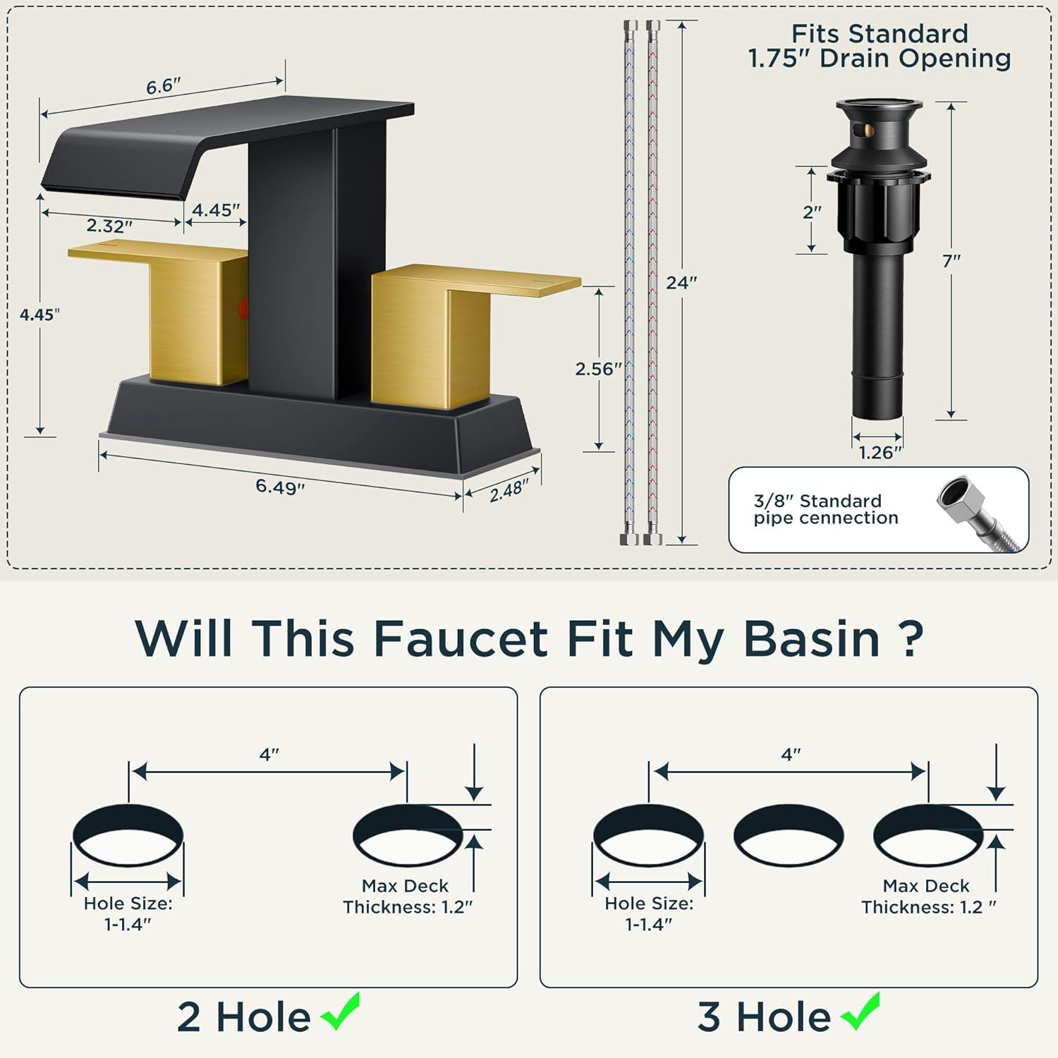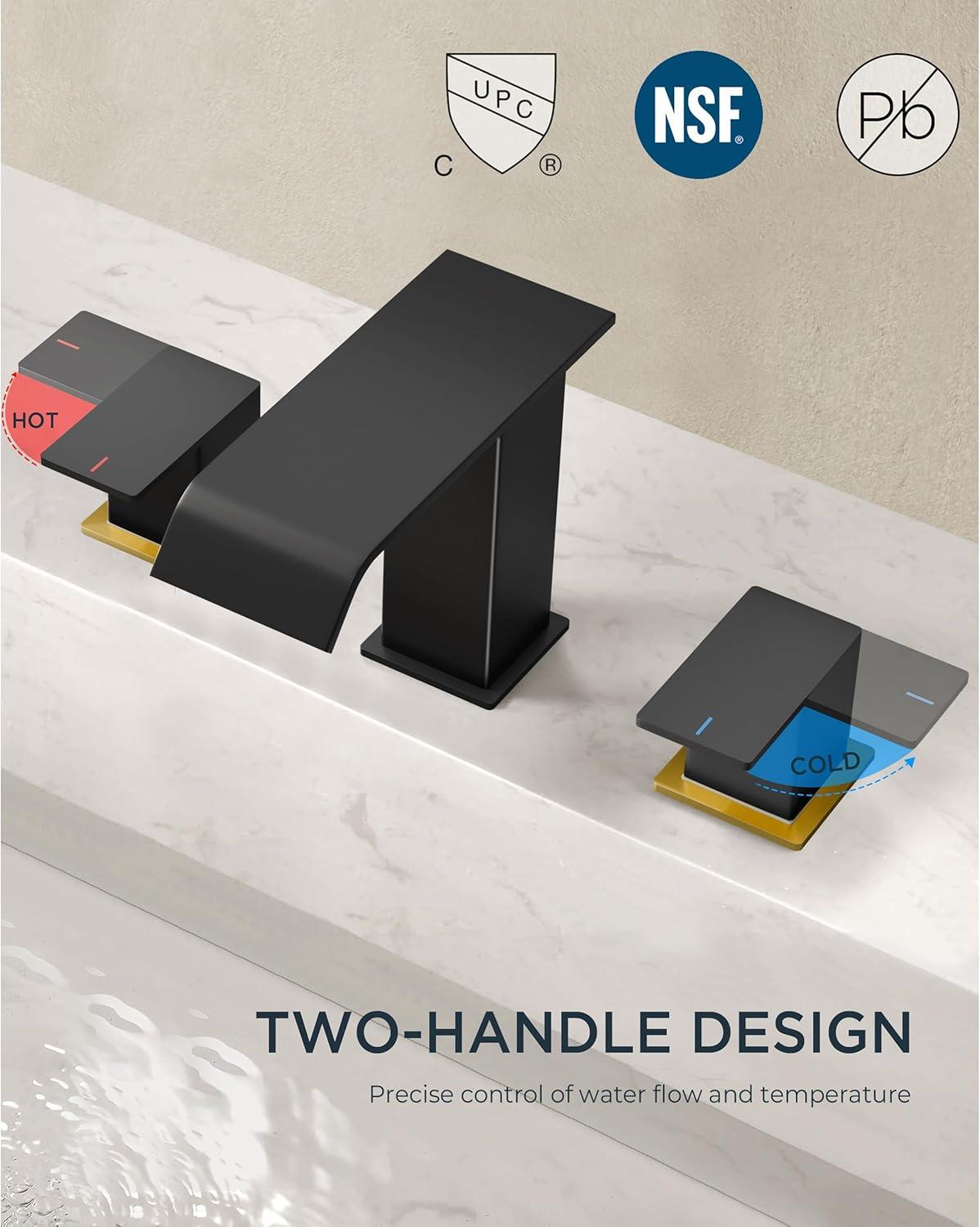 MODERN AESTHETICS: Square waterfall bathroom faucet combines strength and soft beauty, has both modern and natural aesthetics. Suitable for a 3 hole 6-12 inch center sink, and the best installation effect is 6-10 inch. The size is larger, please check your sink hole