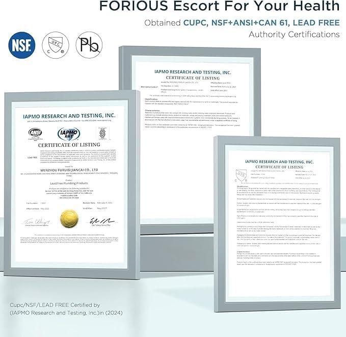 RUSTPROOF & LONG-LASTIING FINISH: FORIOUS bathroom sink faucet 3 hole focuses on quality details, its finish has passed the 24h acid salt spray test and also has added anti-rust treatment, easy to keep the bathroom faucets beautiful throughout the lifespan. It passed CEC, cUPC and NSF61 lead-free certification