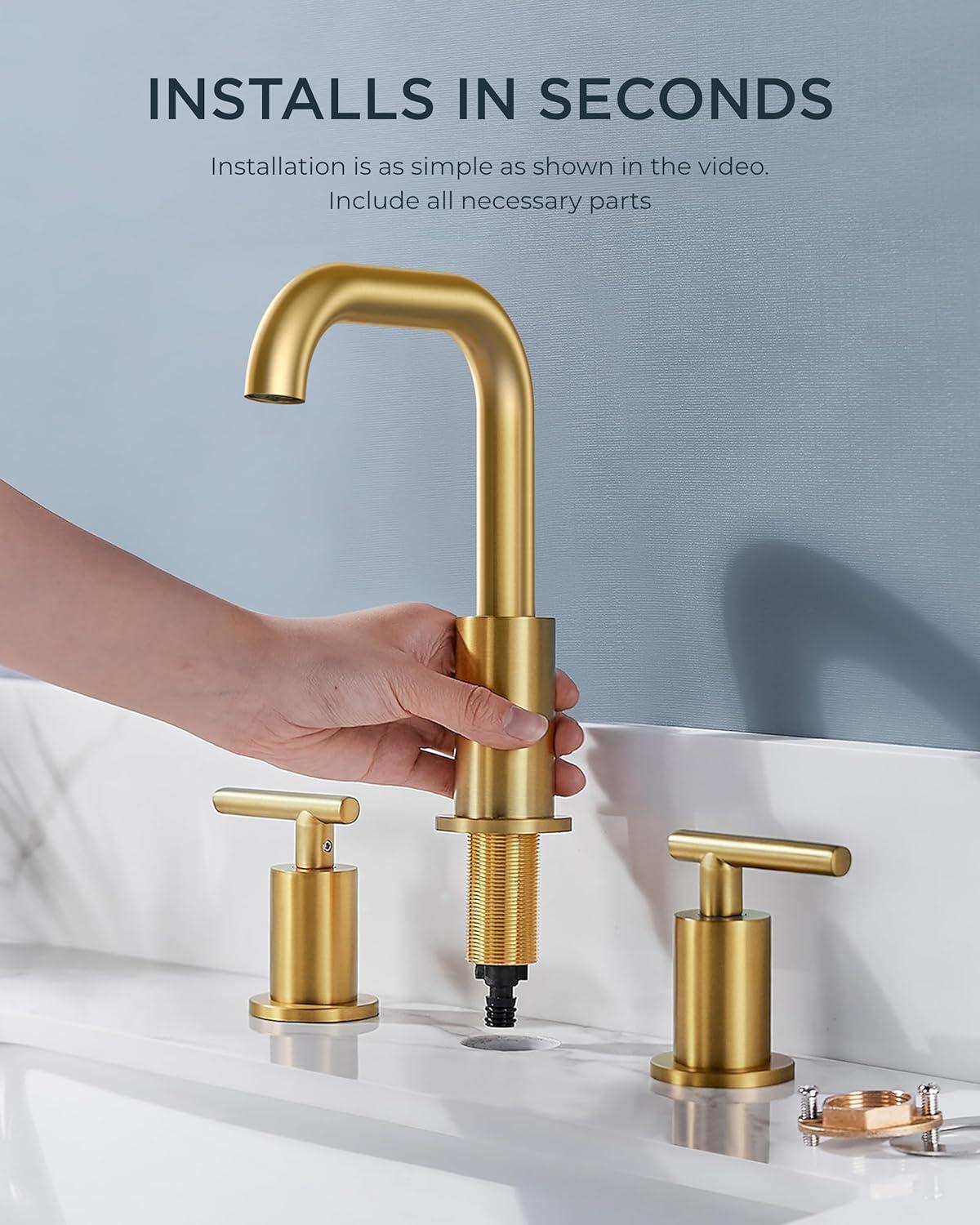 HIGH COMPATIBILITY: This widespread bathroom faucet suitable for a 3 hole 6-12 inch center sink, and the best installation effect is 6-10 inch. Payattention: If your center sink holes are less than 8 inches apart, this faucet may be larger than you expect. Please check the dimensions