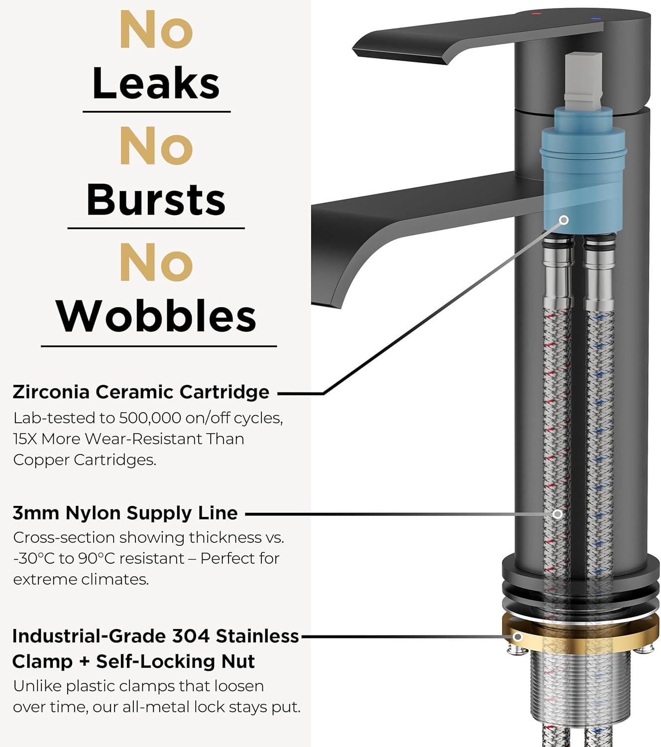 Premium Lead-Free & Corrosion-Resistant Material: Crafted from high-quality SUS 304 stainless steel, this bathroom faucet is 100% lead-free and certified by NSF/ANSI 61.