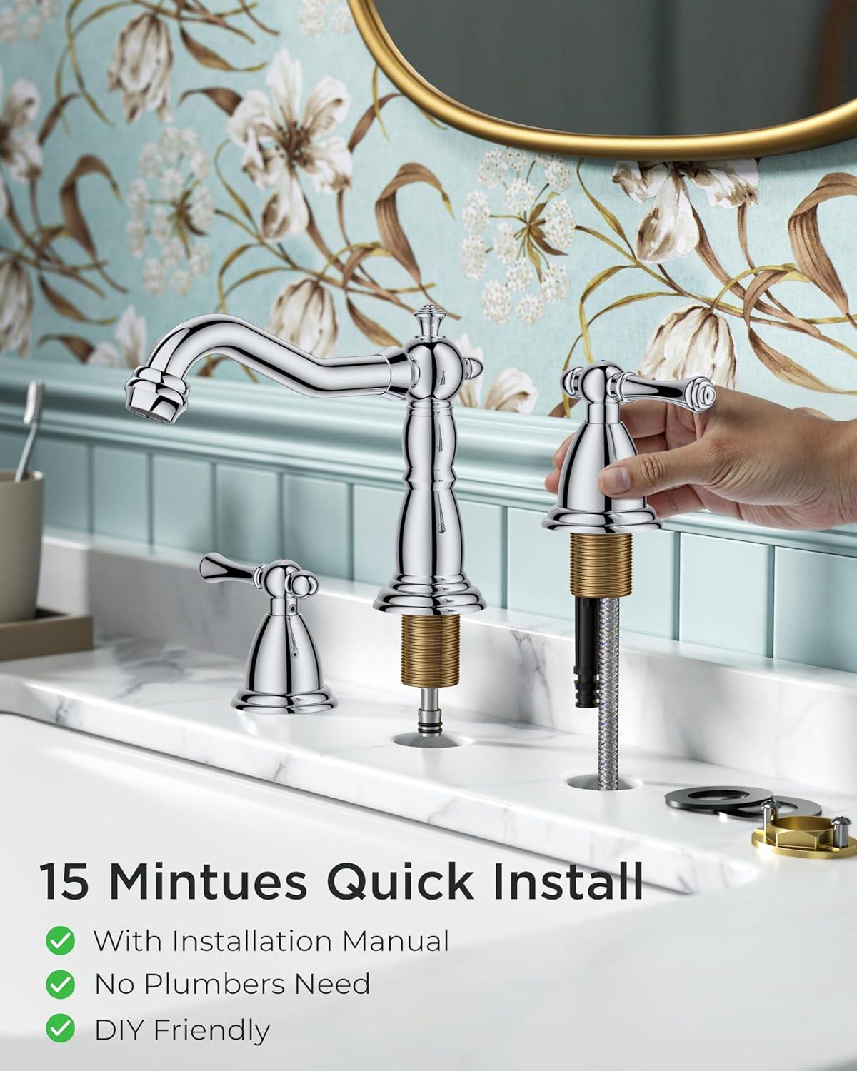 Be the first to review “FORIOUS Brushed Nickel Bathroom Sink Faucet 3 Holes, 2 Handle Widepsread Antique Faucet for Bathroom Sink with Pop-Up Drain and Water Supplies for Commercial Vanity Lavatory Restroom Farmhouse(Chrome)”