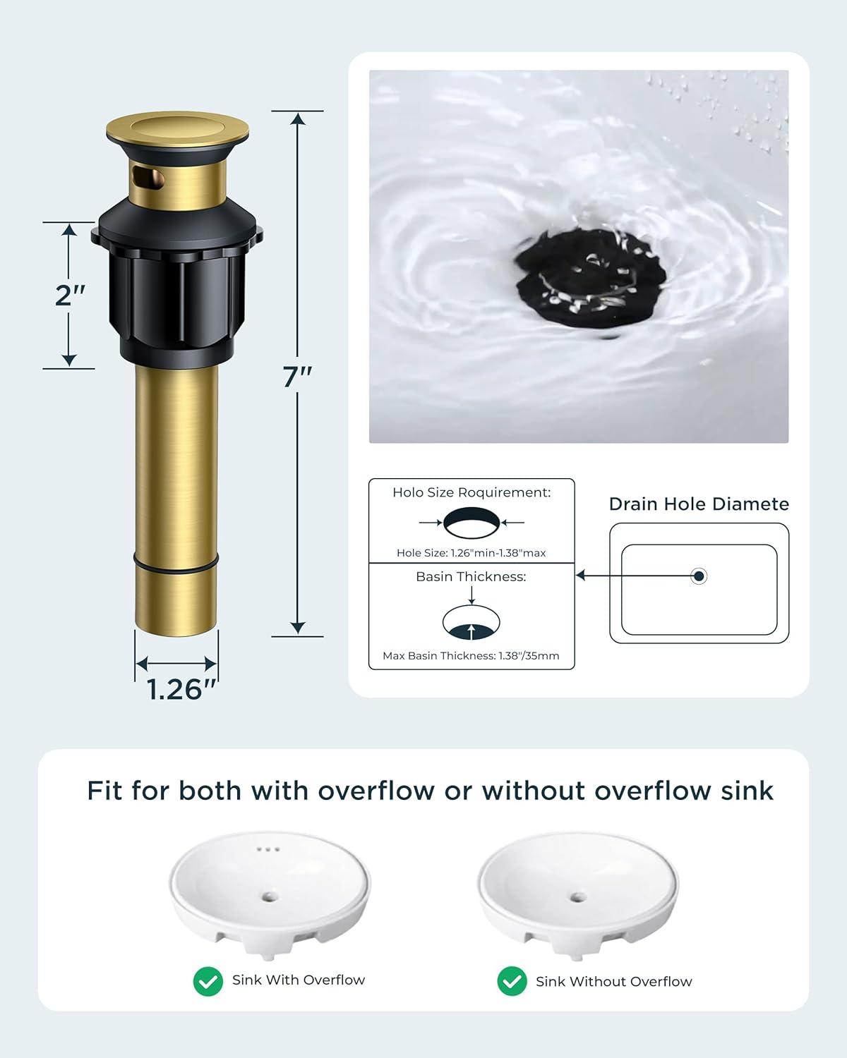 Luxurious & Elegant Design: This bathroom faucet with drain assembly exudes timeless sophistication, combining striking visual appeal with dependable performance and refined finishes.