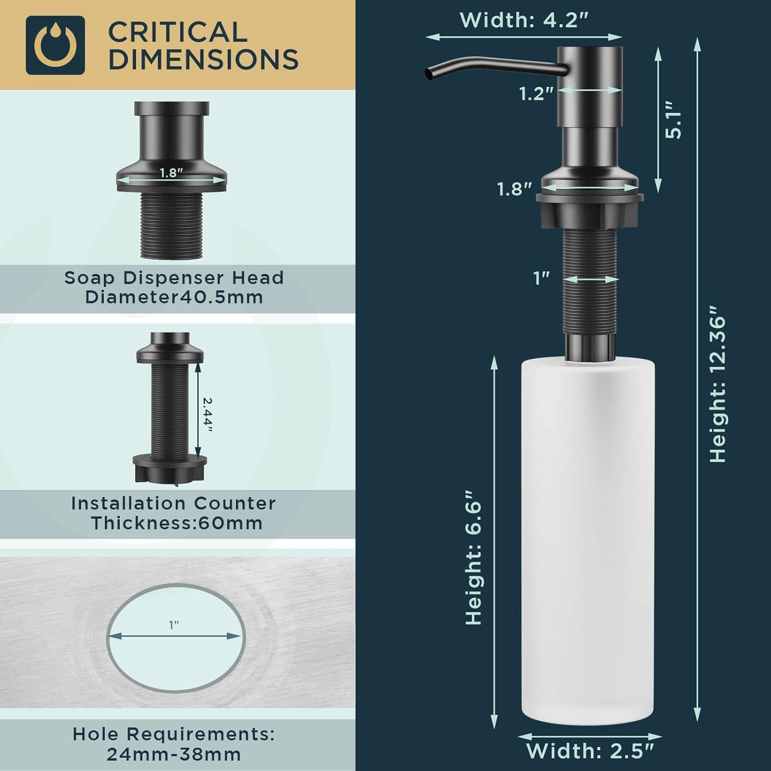 Easy To Use: FORIOUS kitchen soap dispenser comes with a 18 OZ soap bottle, just simply removing soap dispenser pump head and pouring in liquid from the top. It effectively conserves space beneath the sink and avoids crawling under the sink