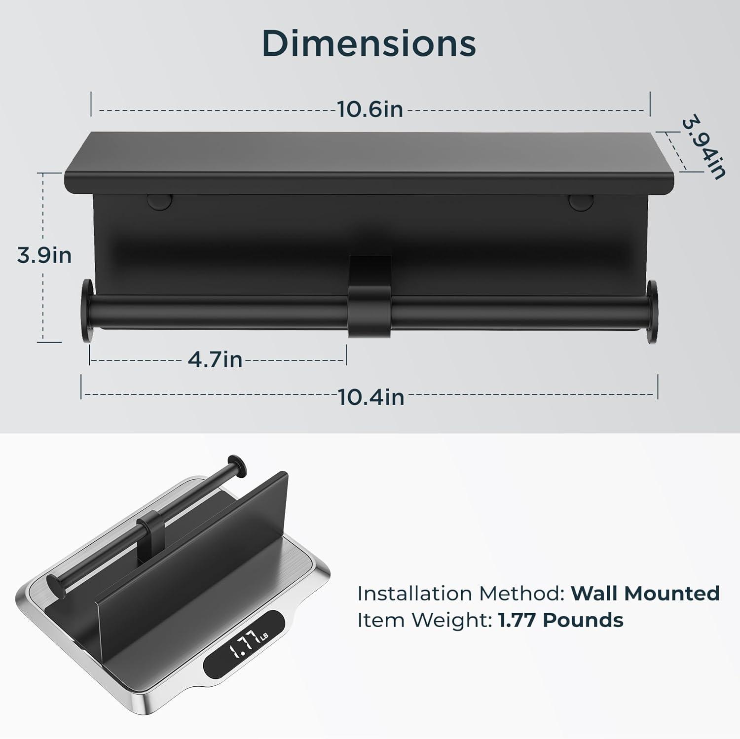 High Quality and Durability: Made of SUS304 stainless steel, the double toilet roll paper holder with phone storage is durable and resistant to scratches, corrosion, and tarnishing. Modern and simple design, perfect for a domestic or commercial bathroom
