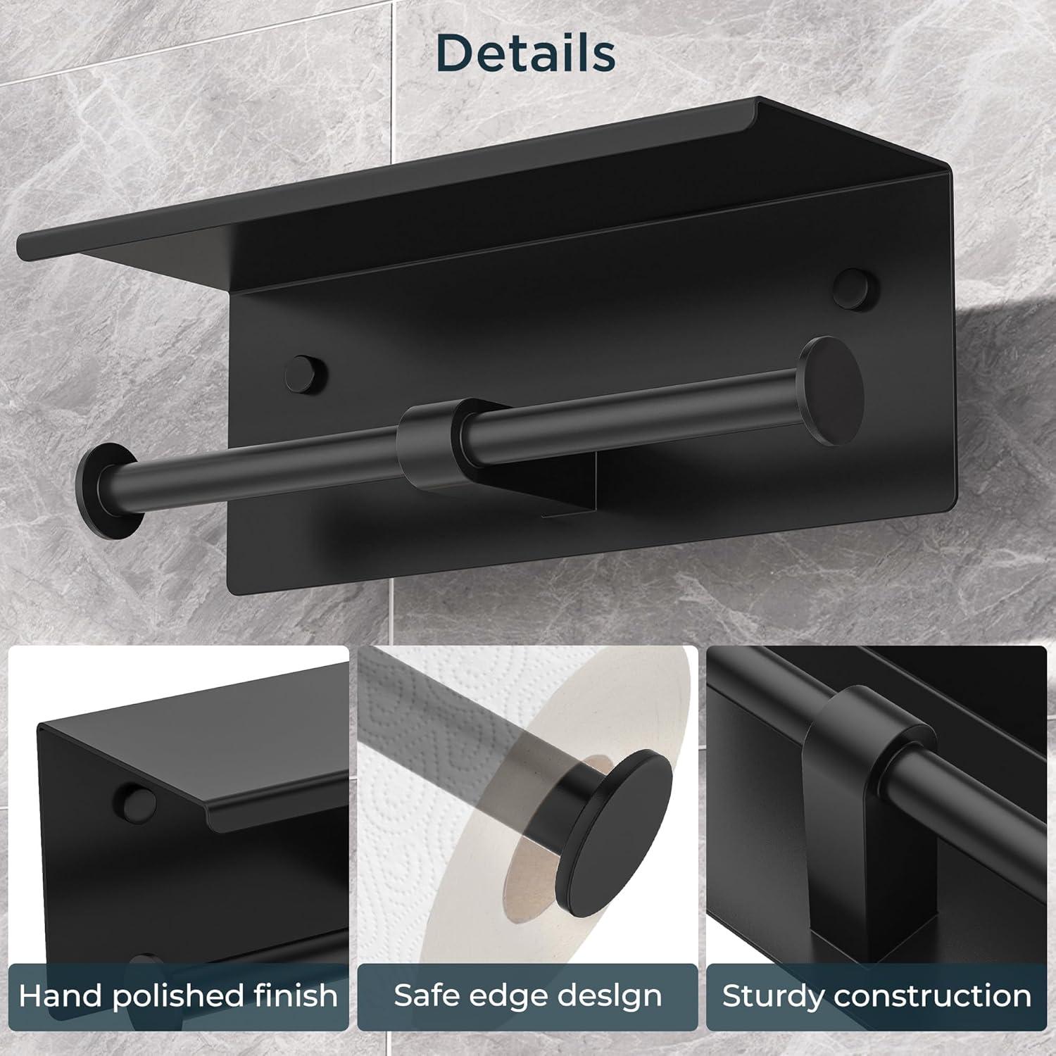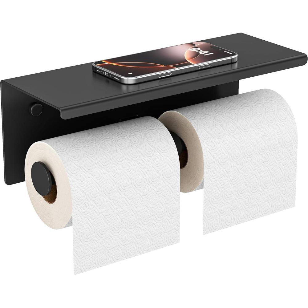 FORIOUS Double Toilet Paper Holder with Shelf, Wall Mount Tissue Roll Holder for Bathroom, 304 Stainless Steel Commercial Toilet Tissue Dispensers with Phone Shelf (1, Oil Rubbed Bronze)(Matte Black)