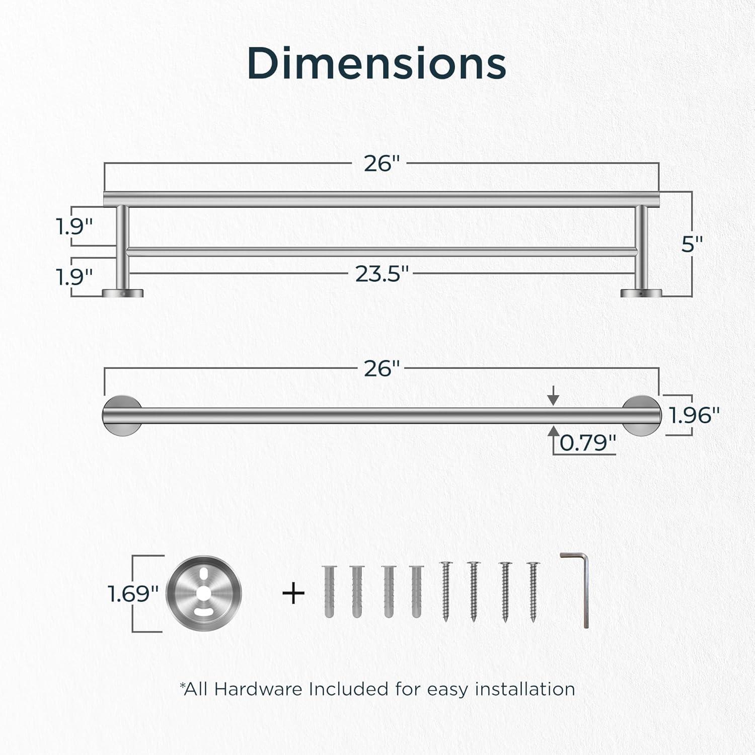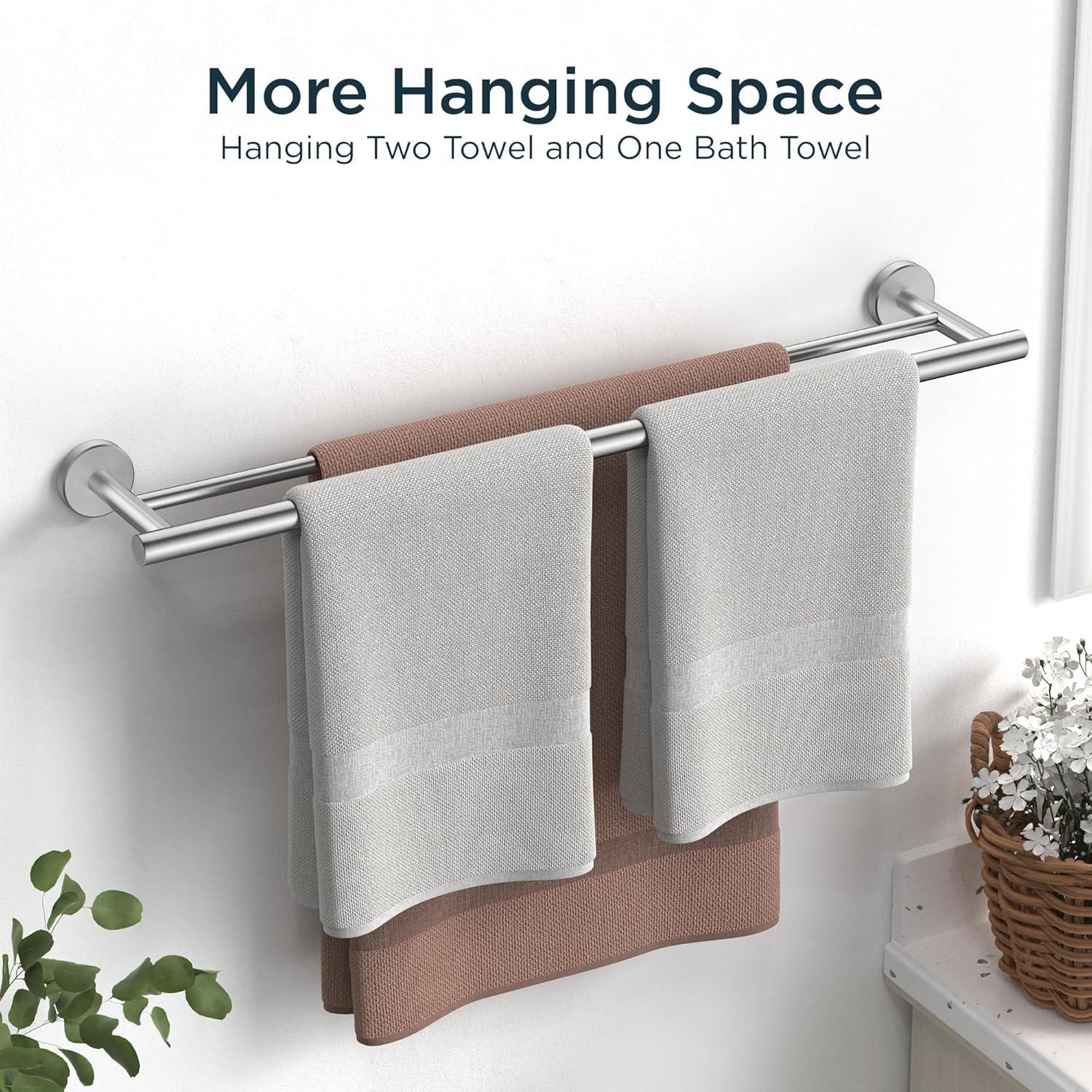Practical Double-Towel Design: With its innovative dual-rod layout, the towel bar maximizes hanging space, allowing you to efficiently organize multiple towels. Perfect for optimizing space in your bathroom while keeping your essentials accessible